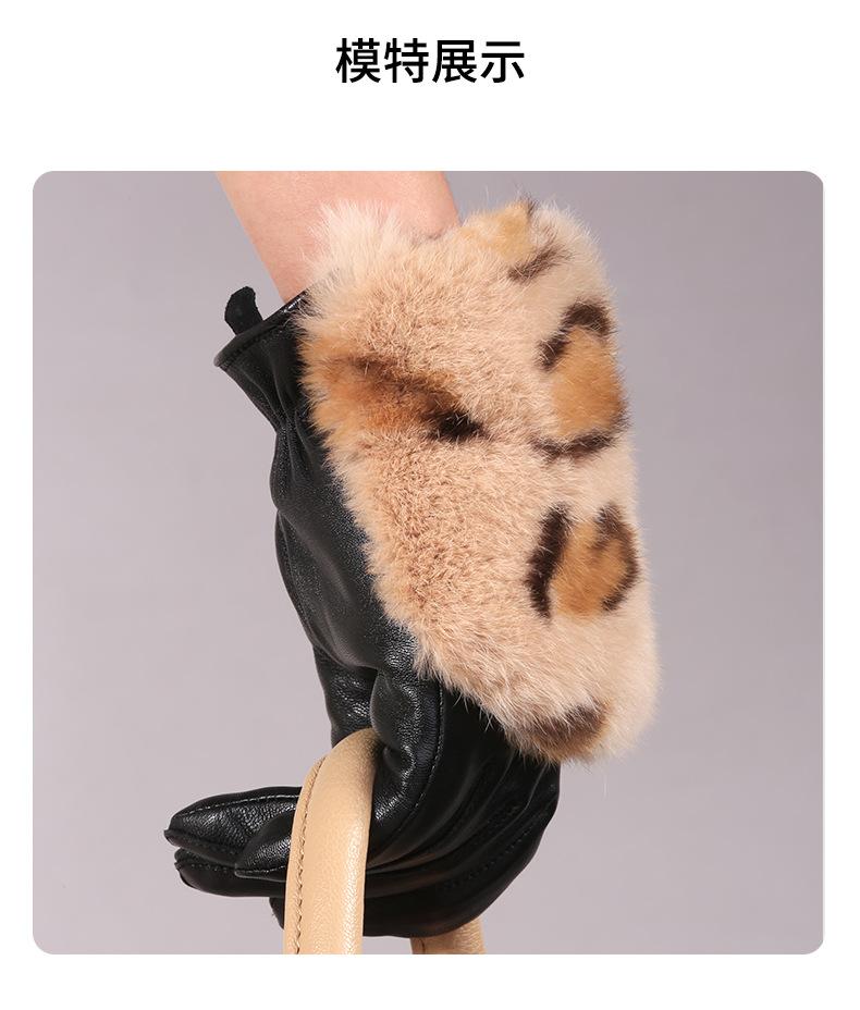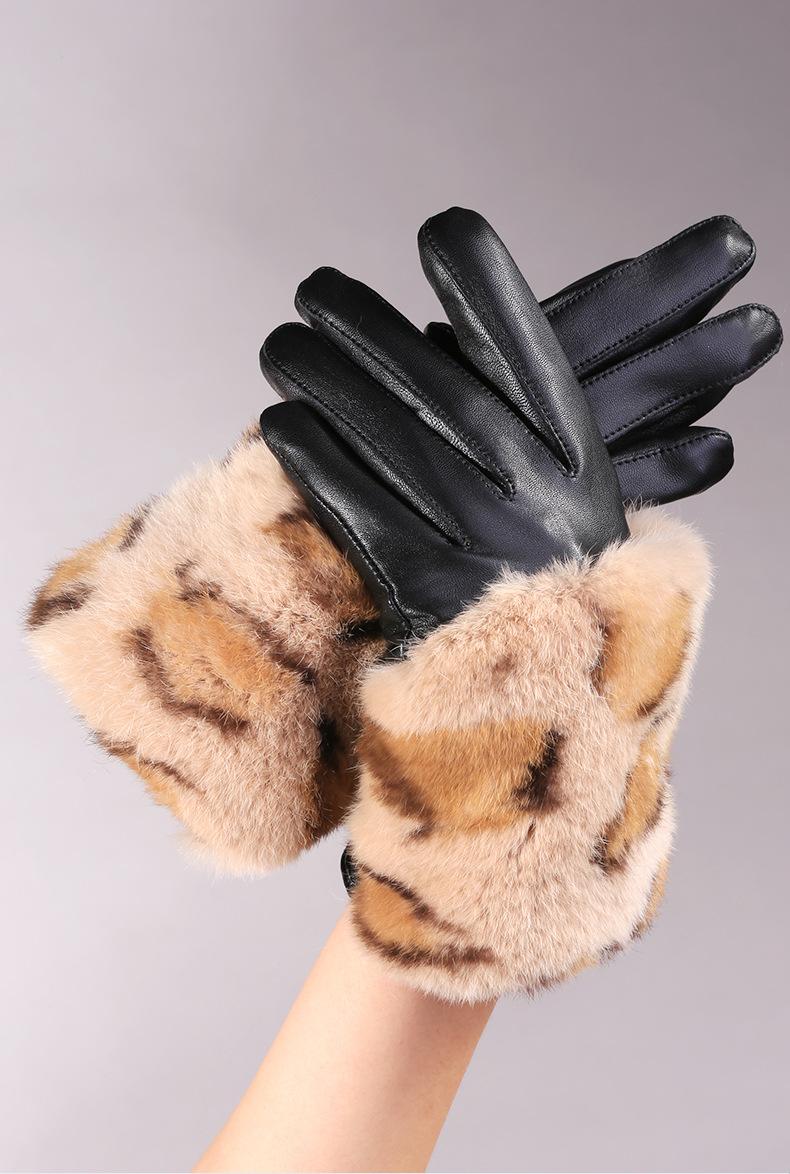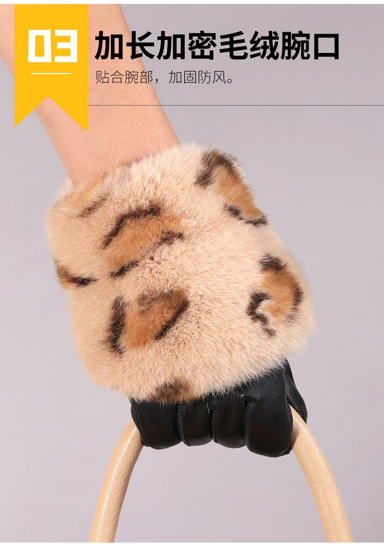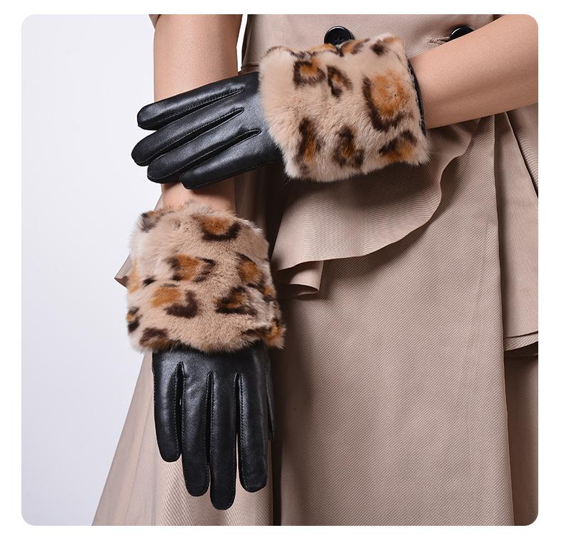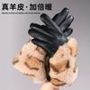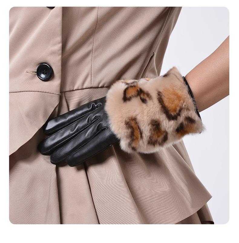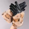 Guantes de piel de oveja auténtica para mujer, de otoño e invierno, con boca grande de piel de conejo y forro polar, gruesos y cálidos, resistentes al viento, para conducir con pantalla táctil.
