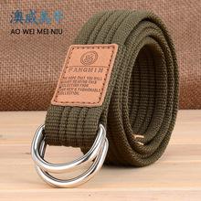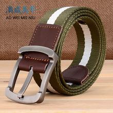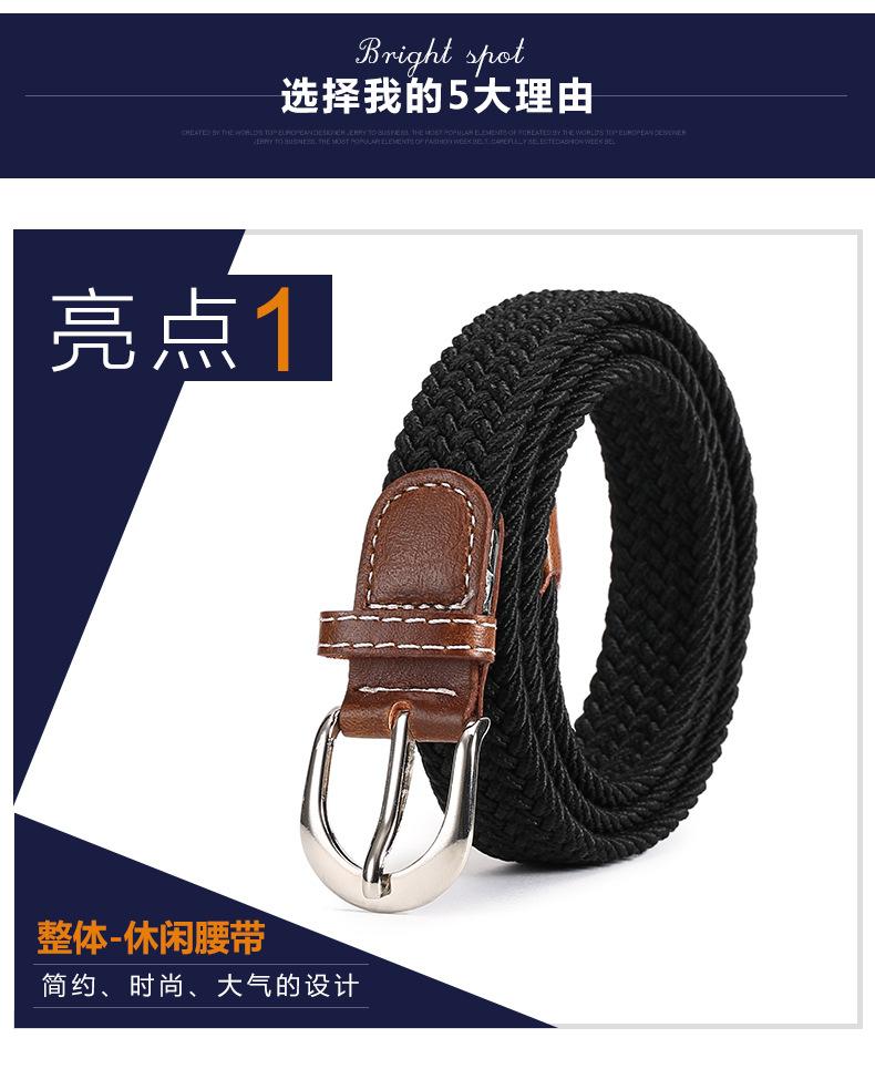 Cinturón de lona tejido de color sólido, con hebilla elástica de 2,5 cm, para hombre y mujer, informal y a la moda.