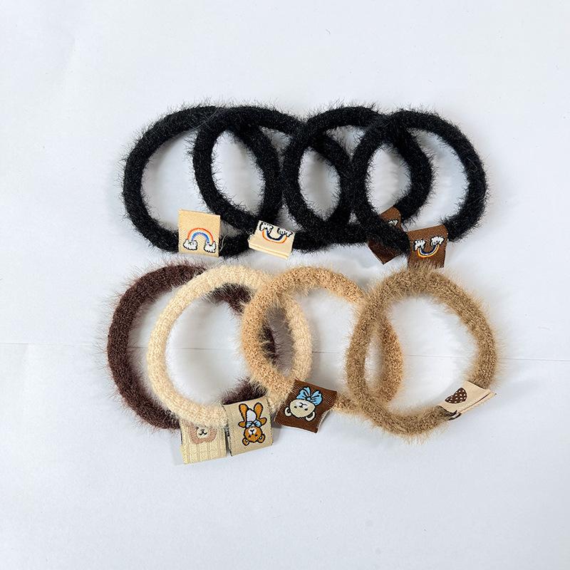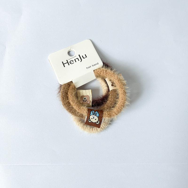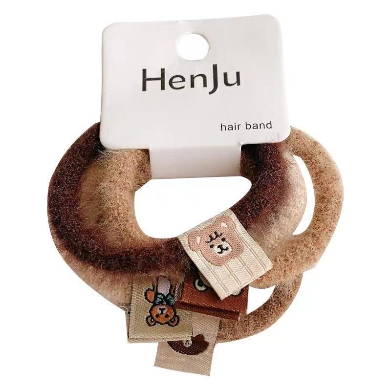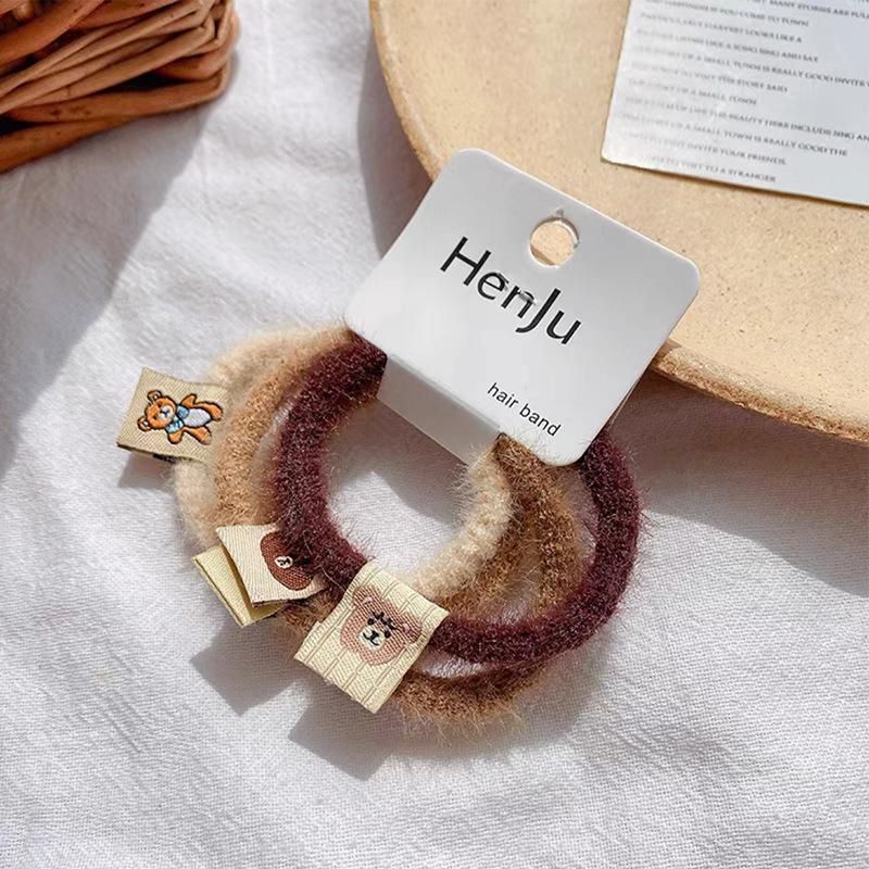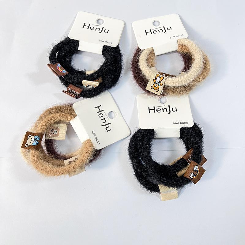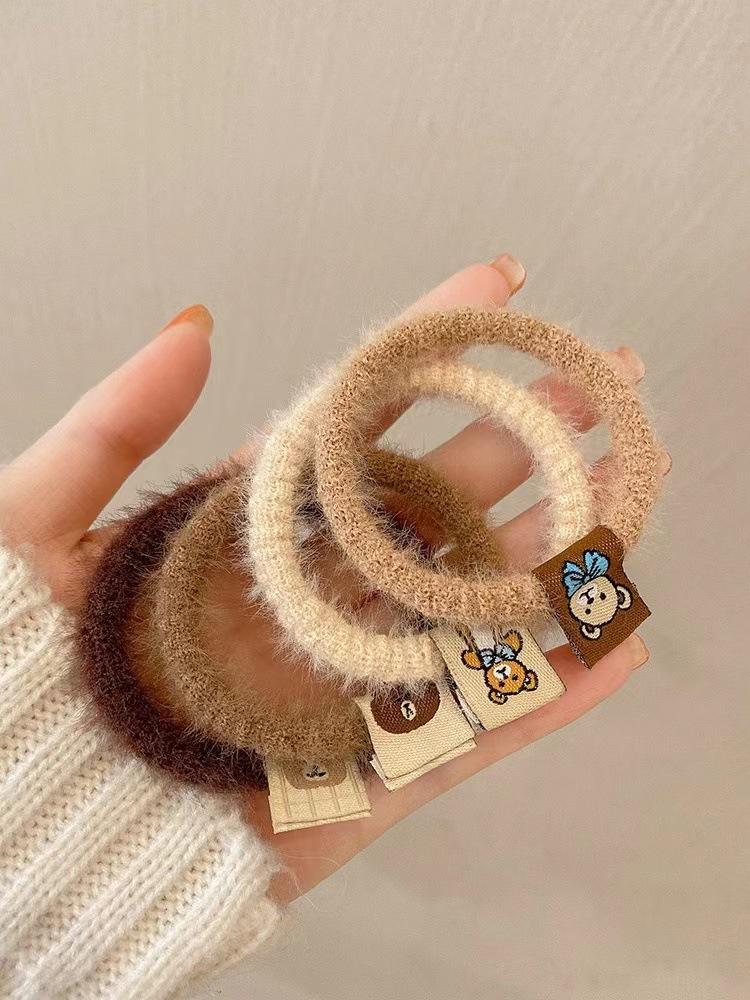 Paquete de 4 ~ Lindo Oso Cuerda para el Cabello Felpa Lazo para el Cabello Cuerda para el Cabello Elástica de Base Banda para el Cabello con Cubierta de Cuero para Mujer Accesorios para el Cabello
