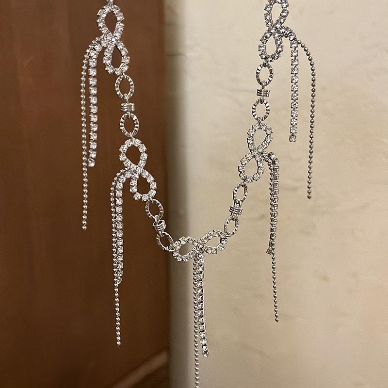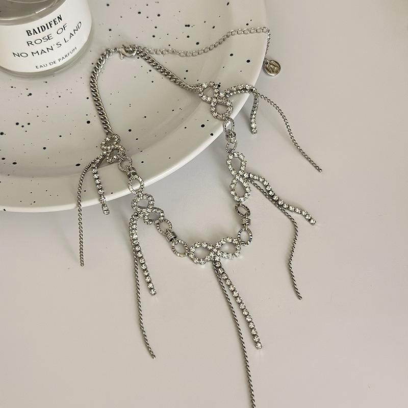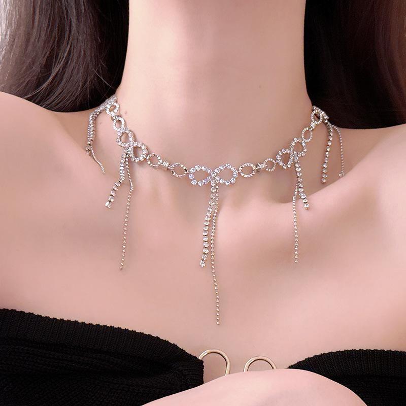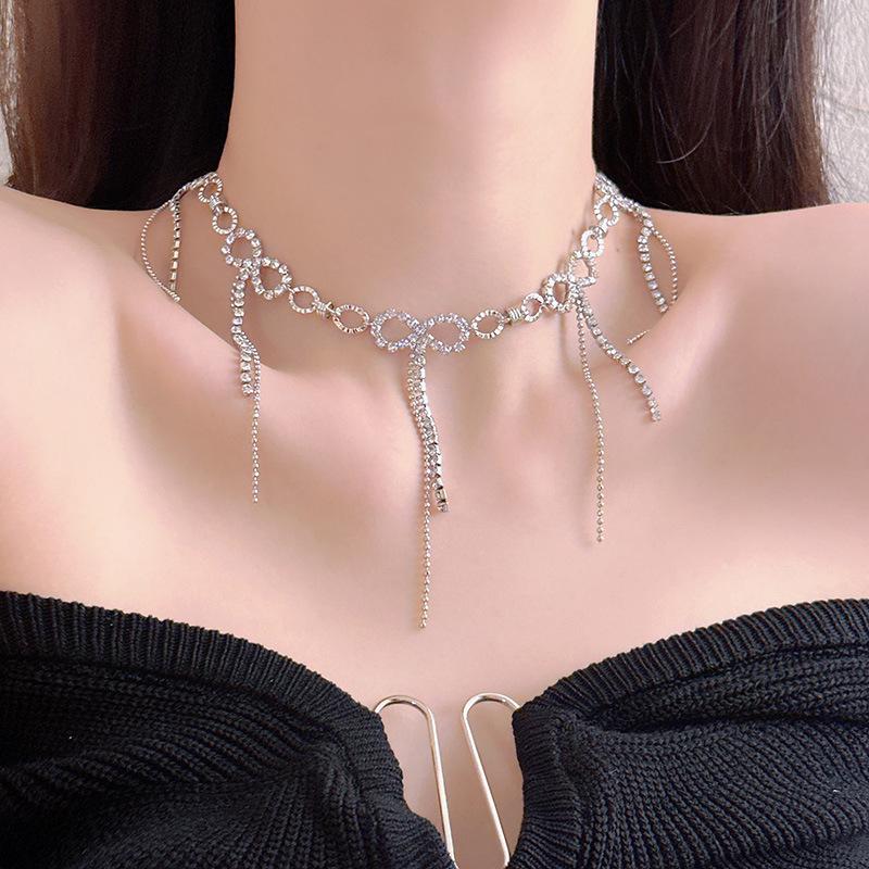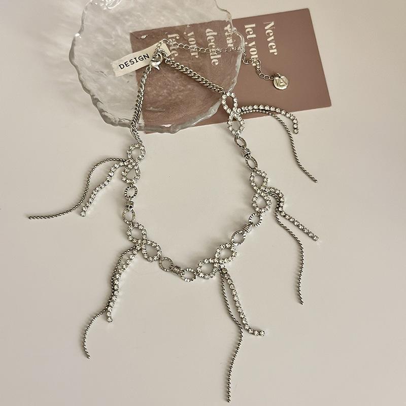 Collar con borla y lazo de diamantes para mujer, nuevo diseño 2024, diseño de nicho, accesorios elegantes de moda.
