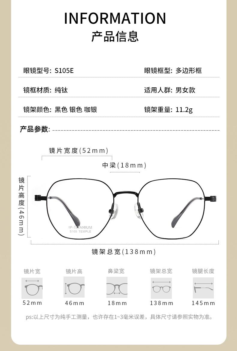 Danyang Lentes Nuevo Armazón de Titanio Puro S105E Artefacto Sin Maquillaje Xiaohongshu Mismo Estilo para Hombre y Mujer Modelo Caliente Venta al por Mayor