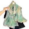 Bufanda grande de seda de imitación de lujo ligera y elegante con protector solar verde, bufanda de seda con estampado de gran tamaño para mujer, bufanda de viajero diario