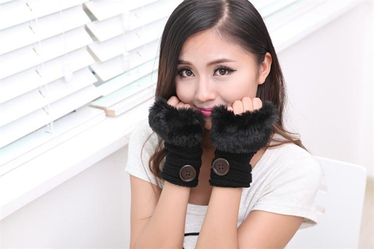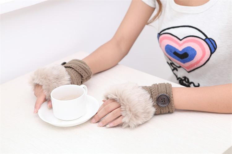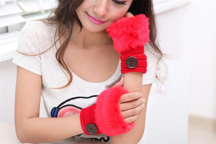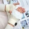 Guantes de punto cálidos para mujer, temporada otoño-invierno, nueva moda a juego, para montar a caballo, estilo coreano, con hebilla de pelo de medio dedo para adultos