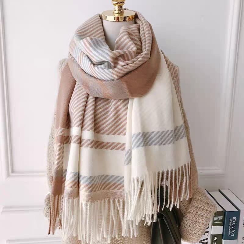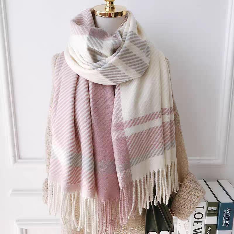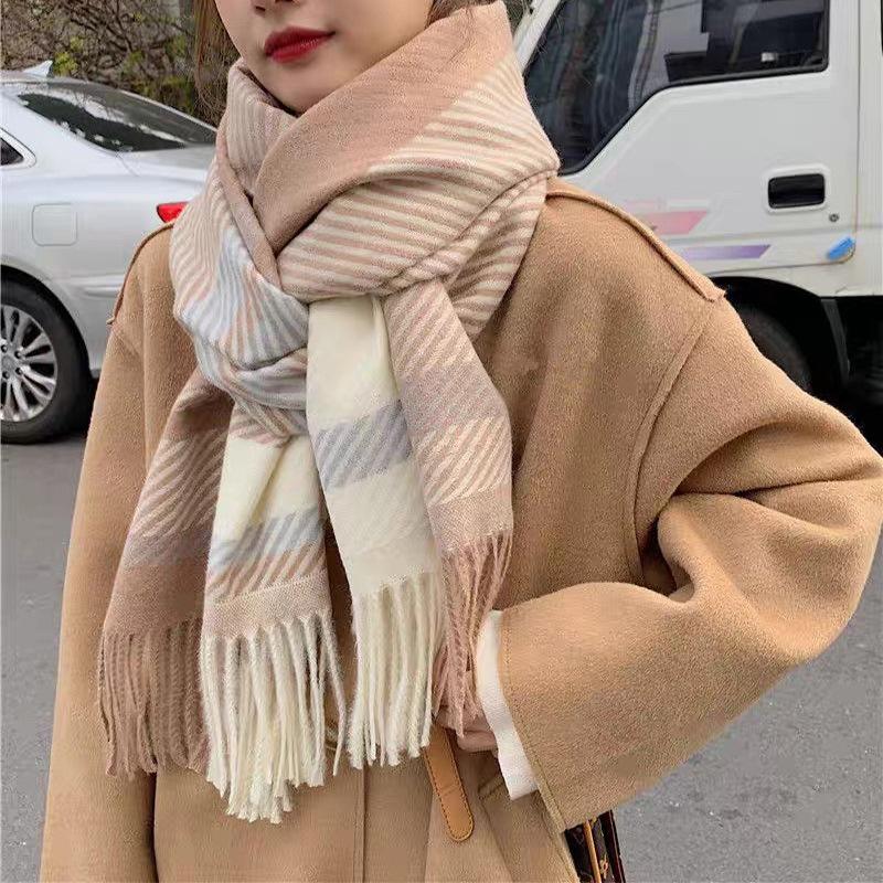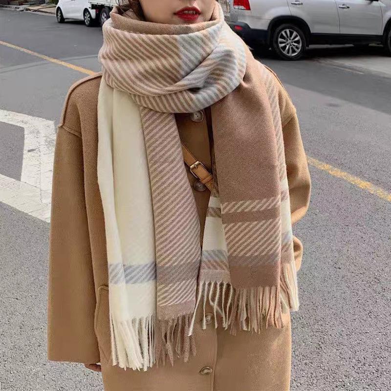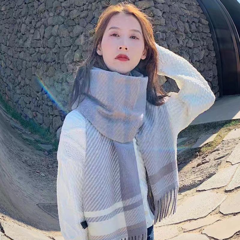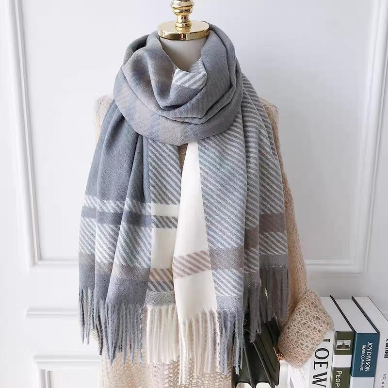 Bufanda de cuadros nueva para mujer otoño e invierno gruesa cálida bufanda versátil estilo coreano tipo cachemira con flecos chal de cuadros invierno
