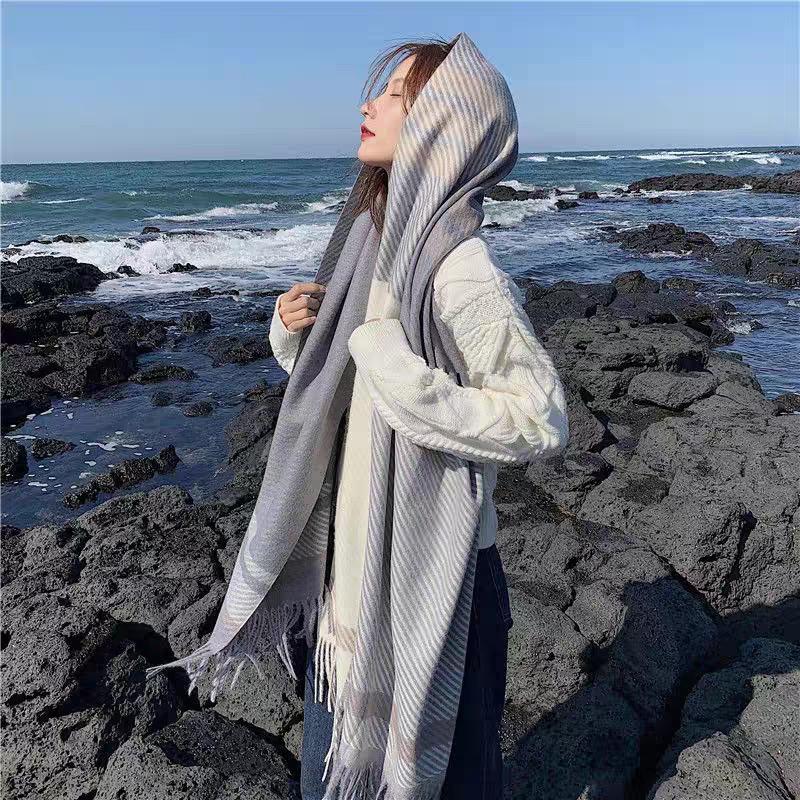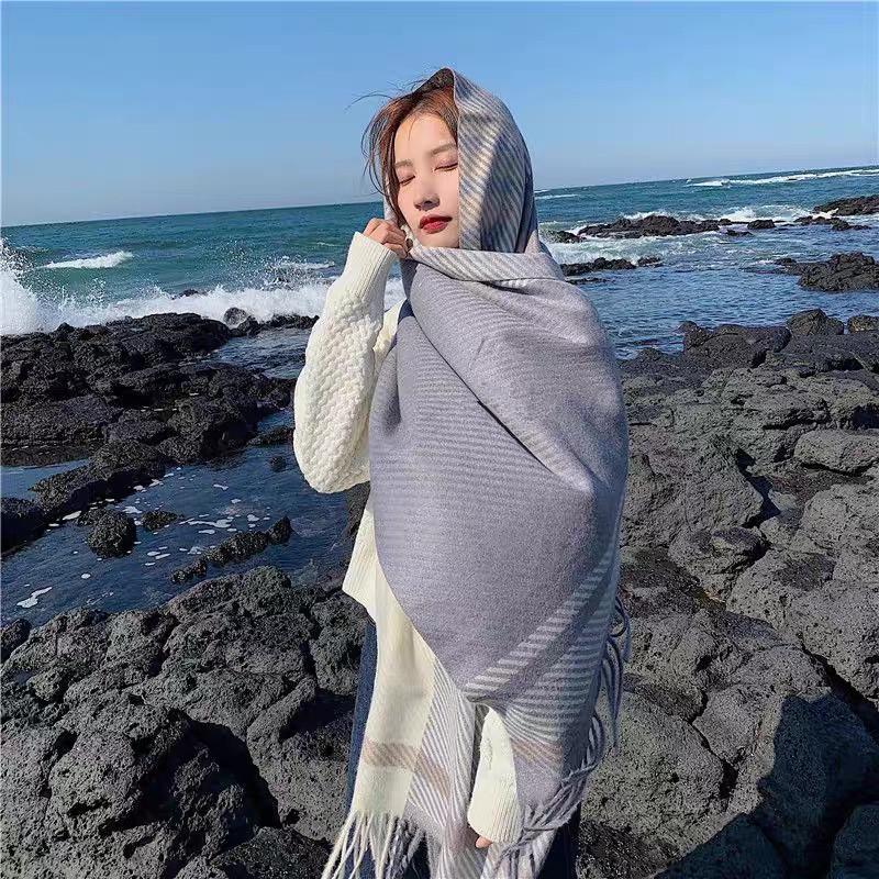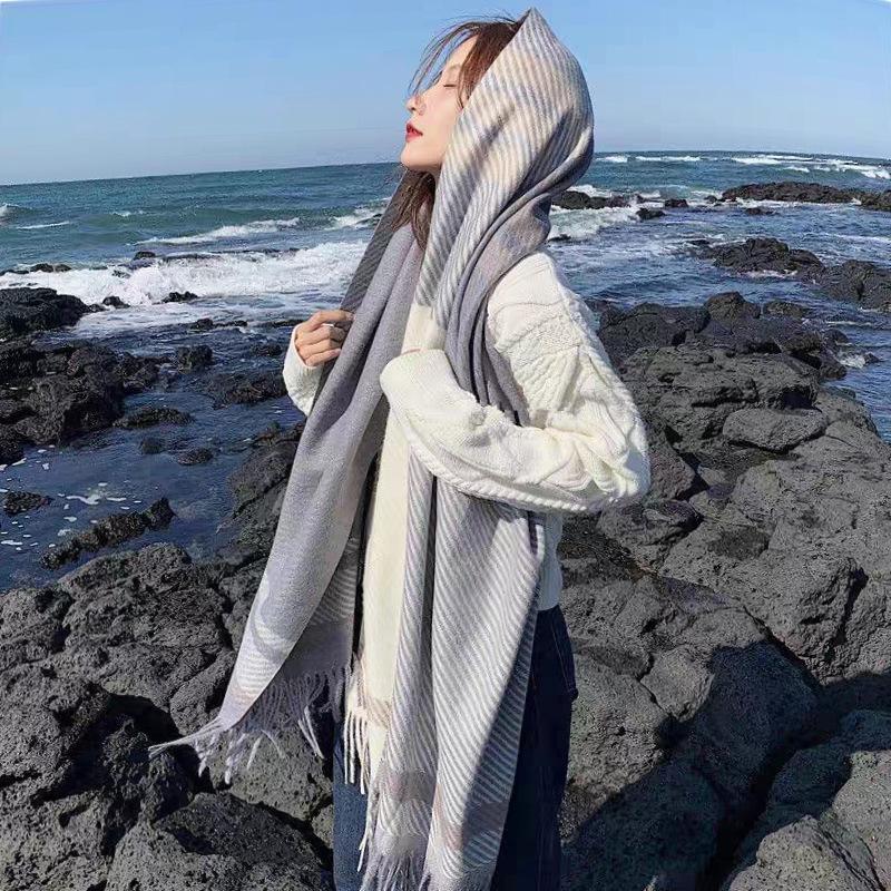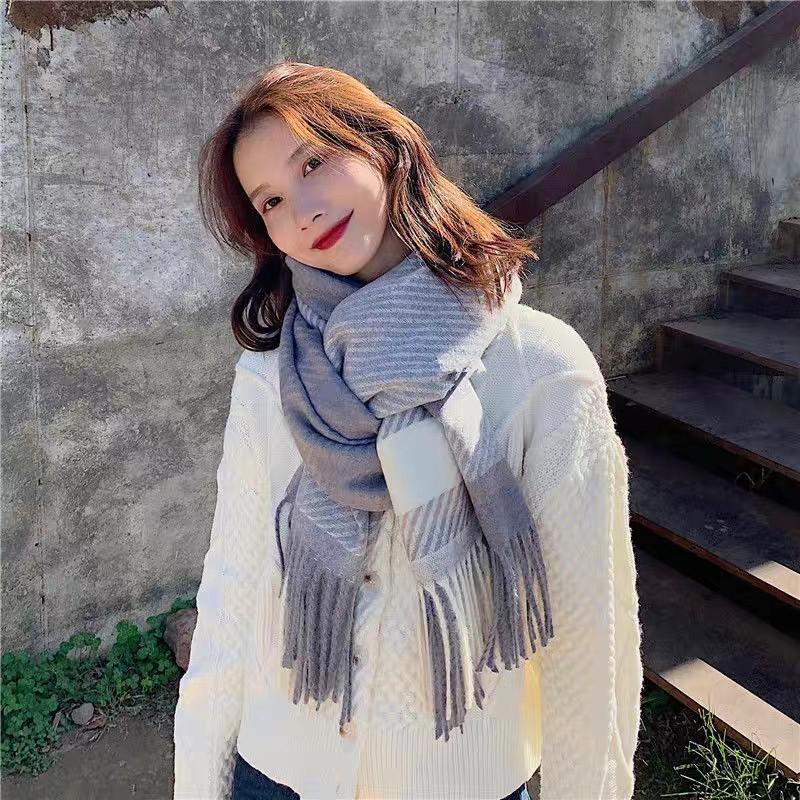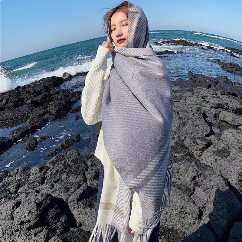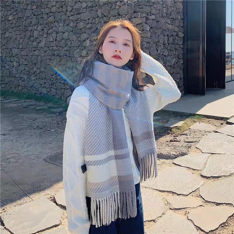 Bufanda de cuadros nueva para mujer otoño e invierno gruesa cálida bufanda versátil estilo coreano tipo cachemira con flecos chal de cuadros invierno