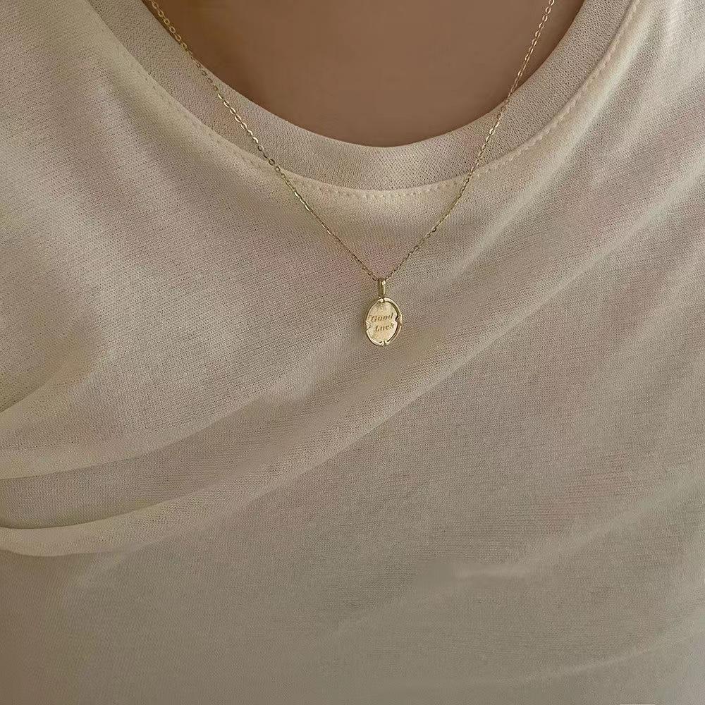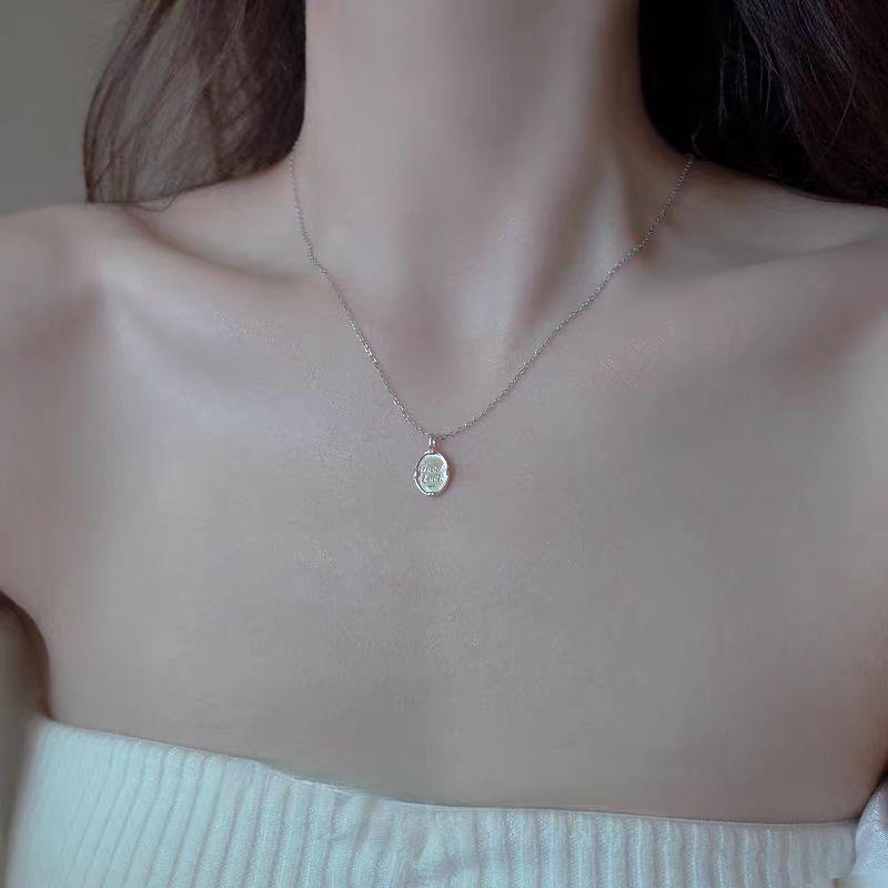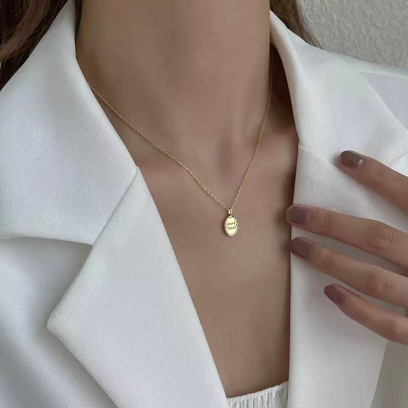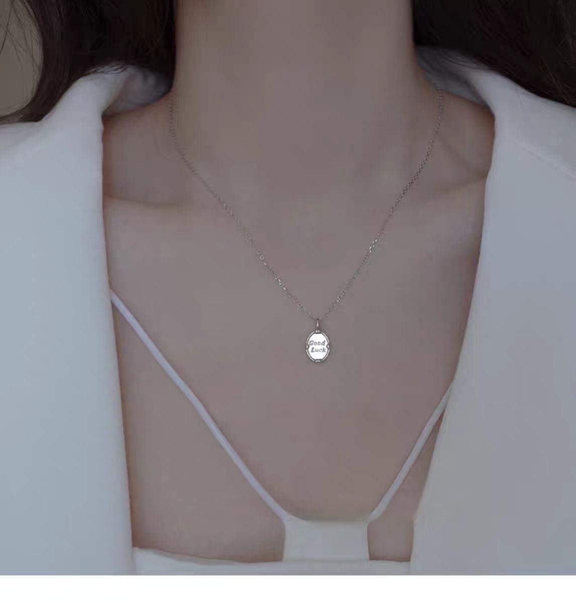 Collar de Plata Esterlina S925 Coreana con Letra de Buena Suerte Colgante Pequeño Collar Nicho Cadena para Clavícula Nueva para Mujer Estilo Ins