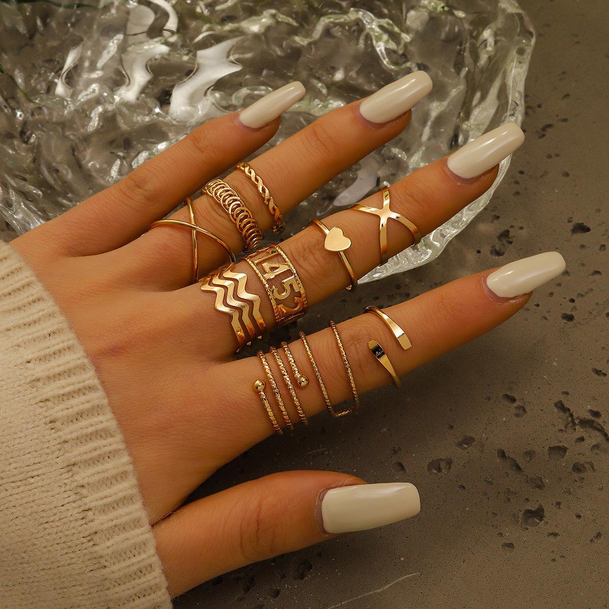 Europa y Estados Unidos nuevo oro hueco digital 5201314 amor cruz multicapa apertura traje de 10 piezas anillo joyería