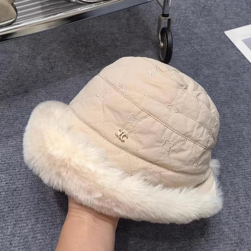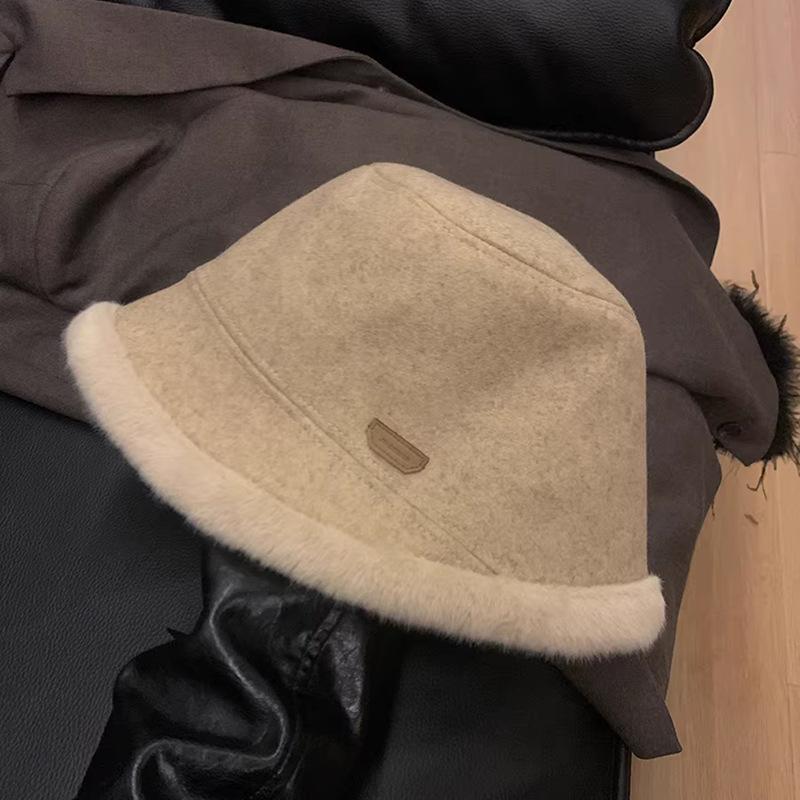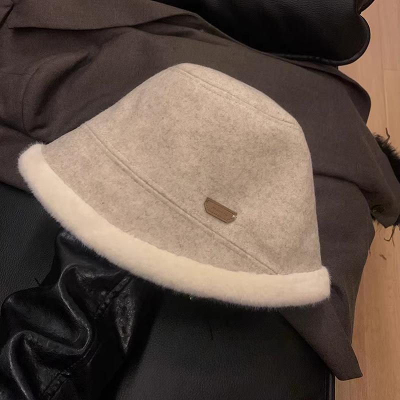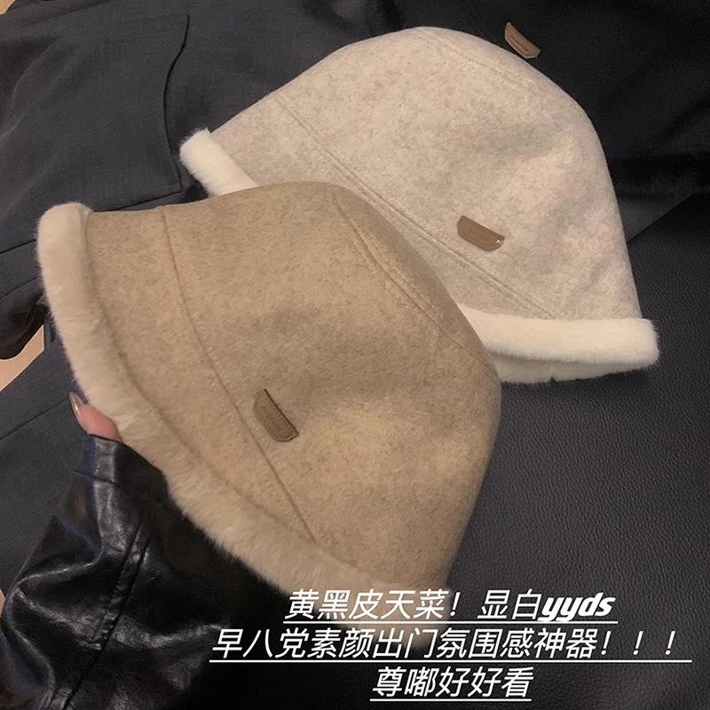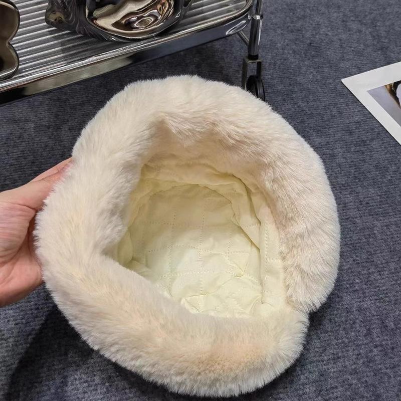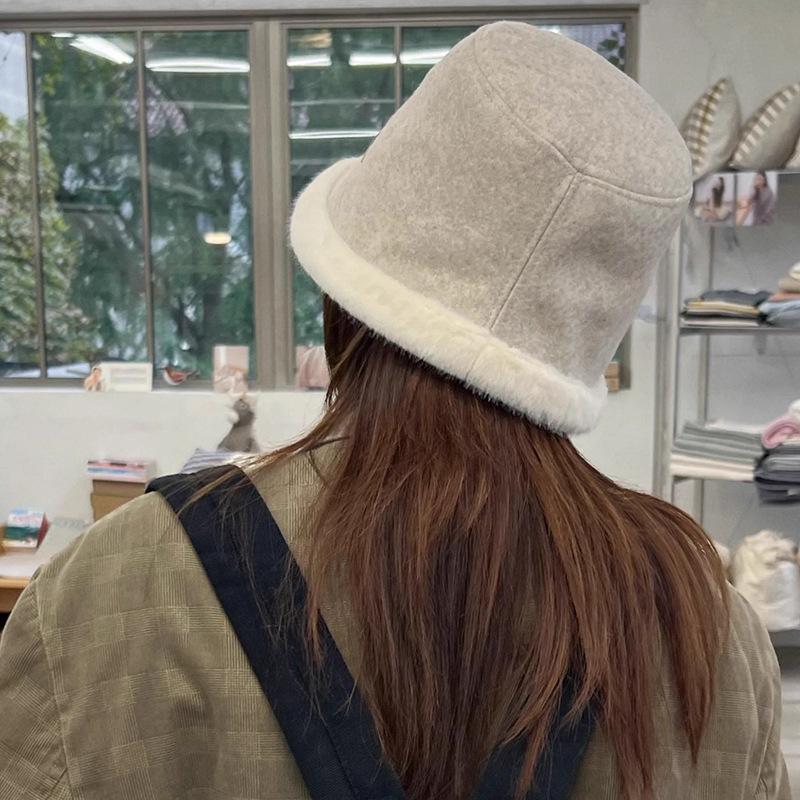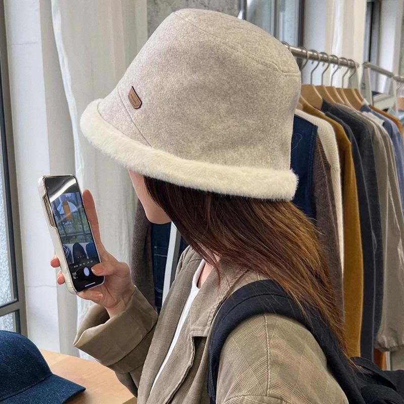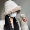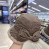 Invierno grueso cálido sombrero de cuenca femenino Corea del Sur Celebridad de Internet Versátil a prueba de frío protección para las orejas felpa sombrero de pescador sombrero de cubo con lazo