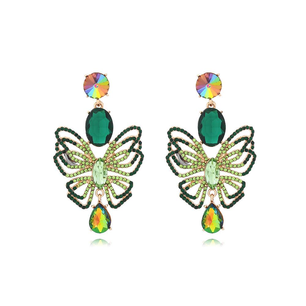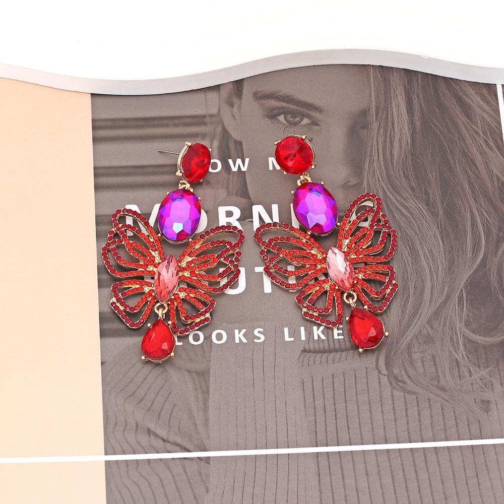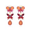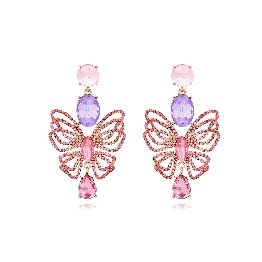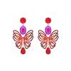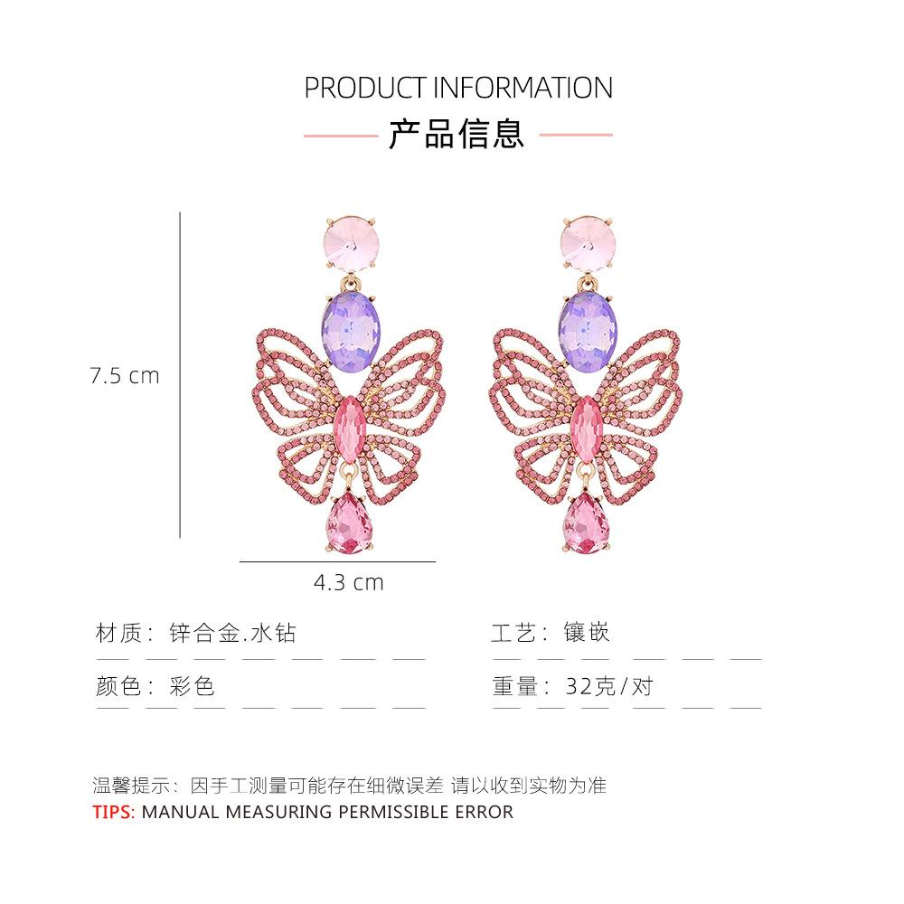 Pendientes de mariposa de diamantes de colores dulces de lujo europeos y americanos, pendientes de insectos de alta calidad con incrustaciones de diamantes de aleación hueca, pendientes transfronterizos para mujeres