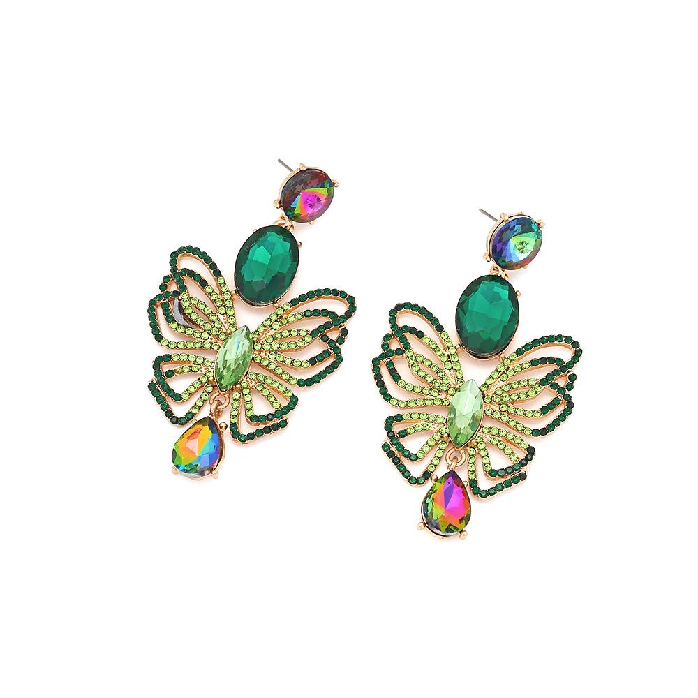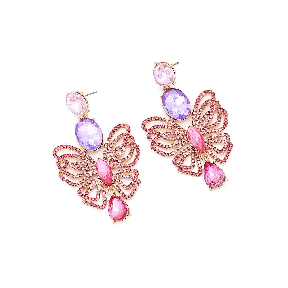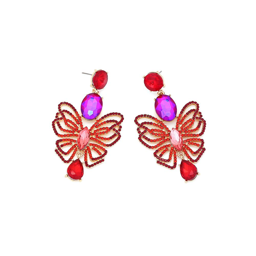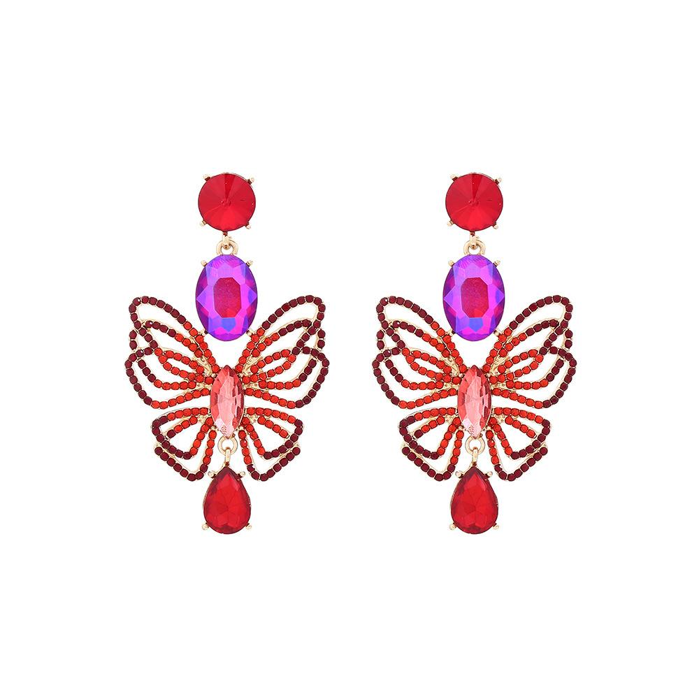 Pendientes de mariposa de diamantes de colores dulces de lujo europeos y americanos, pendientes de insectos de alta calidad con incrustaciones de diamantes de aleación hueca, pendientes transfronterizos para mujeres