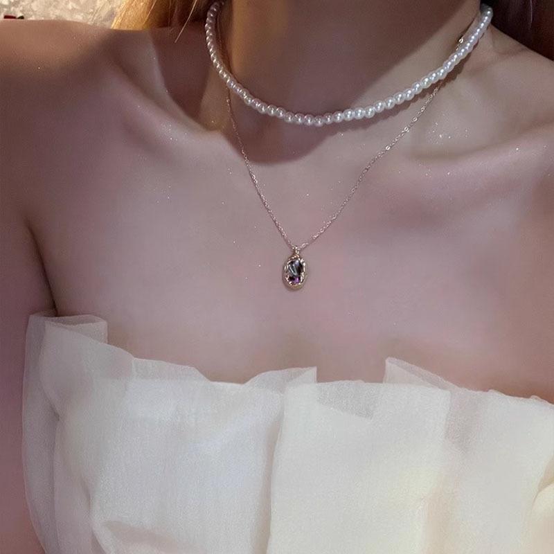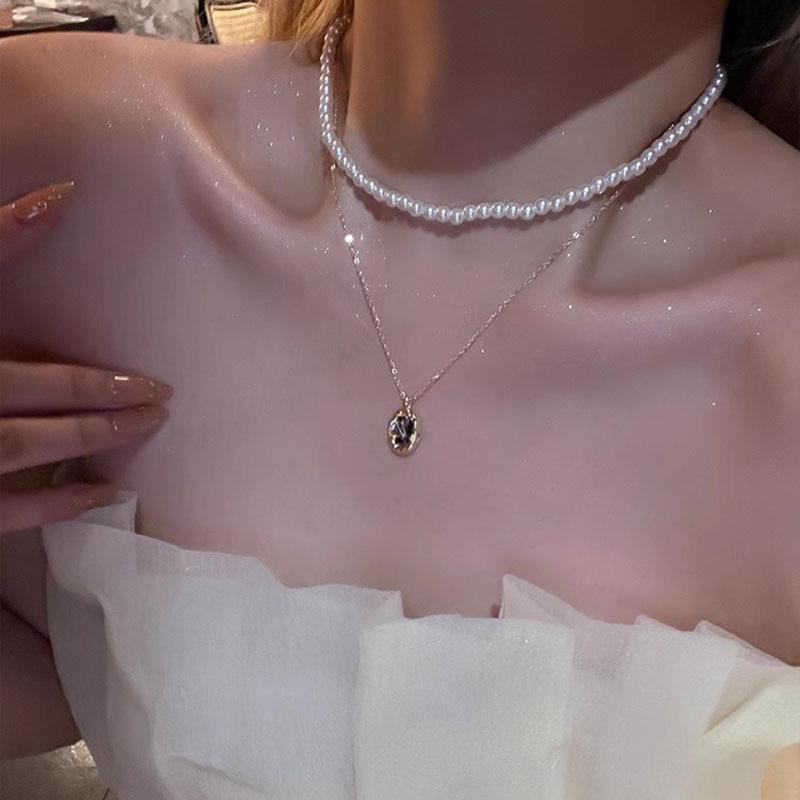 Collar de perlas, collar para mujer, ligero, de lujo, de alta gama, con diseño de sentido nicho, cadena de clavícula, gargantilla, nueva cadena de suéter de moda