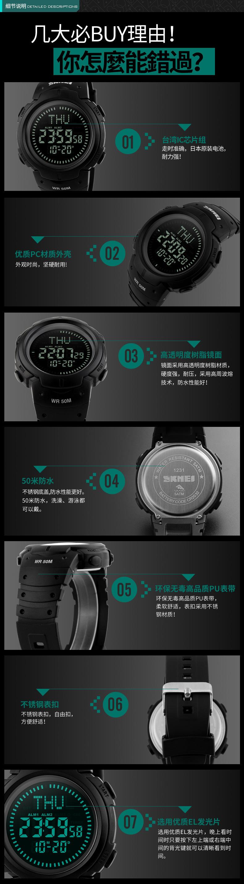 | Material | Caja de PC, correa de plástico PU, espejo de resina engrosado y endurecido, cubierta inferior de acero inoxidable, hebilla de acero inoxidable |