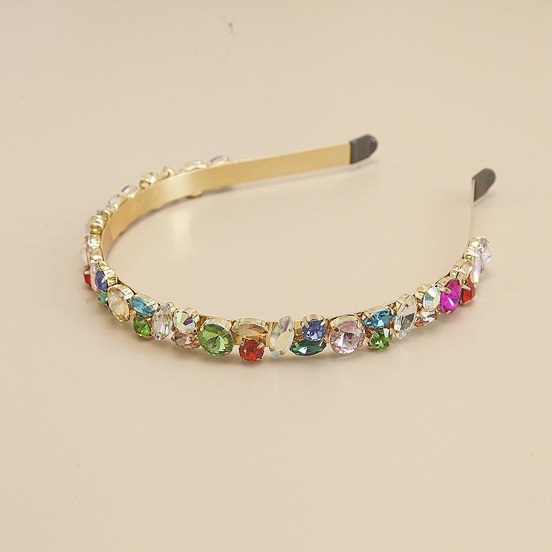 Diadema de diamantes de cristal de colores de metal de moda europea y americana, accesorios para el cabello de diamantes barrocos transfronterizos, tocado personalizado, venta al por mayor
