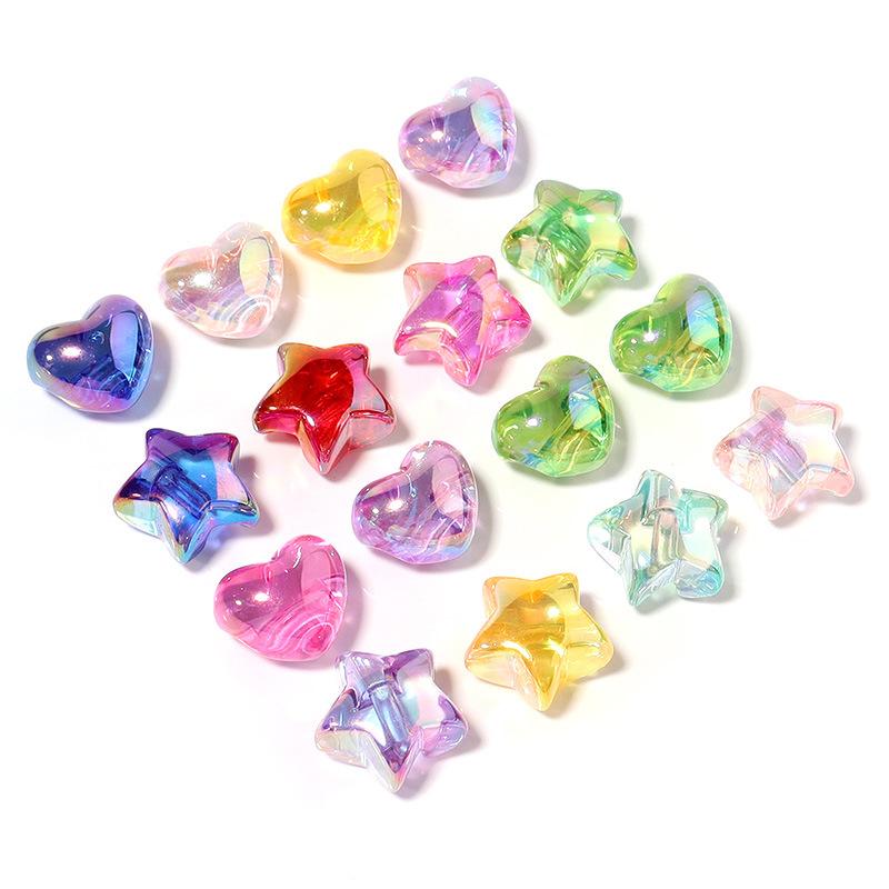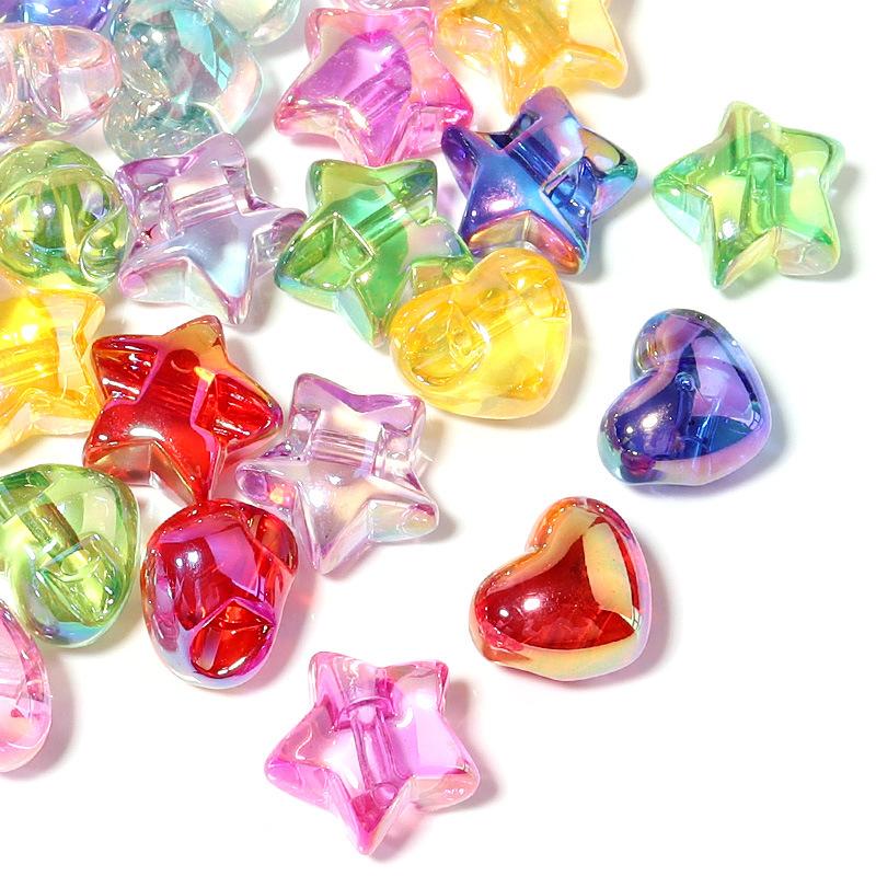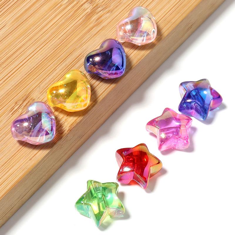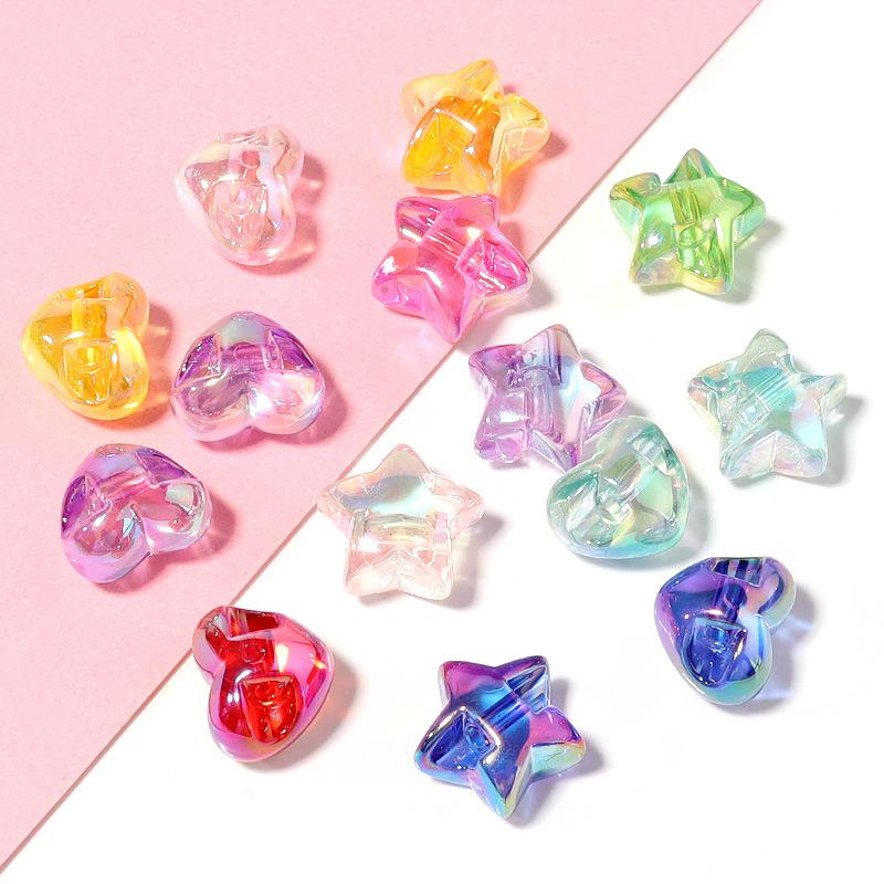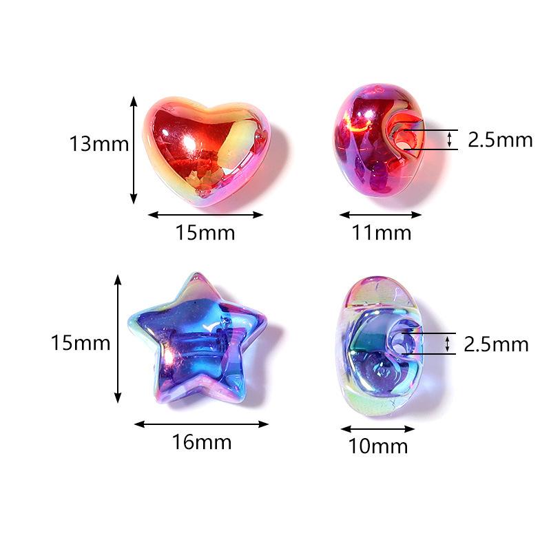 Corazón chapado en color, tamaño: 13X15mm, apertura: 2.5mm, 10 piezas/paquete, alrededor de 18 gramos Estrella de cinco puntas chapada en color, tamaño: 16x15mm, abertura: 2.5mm, 10 piezas/paquete, aproximadamente 20 gramos |