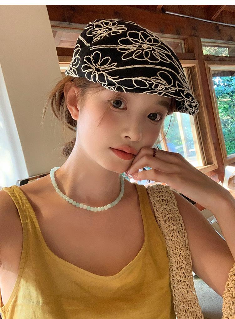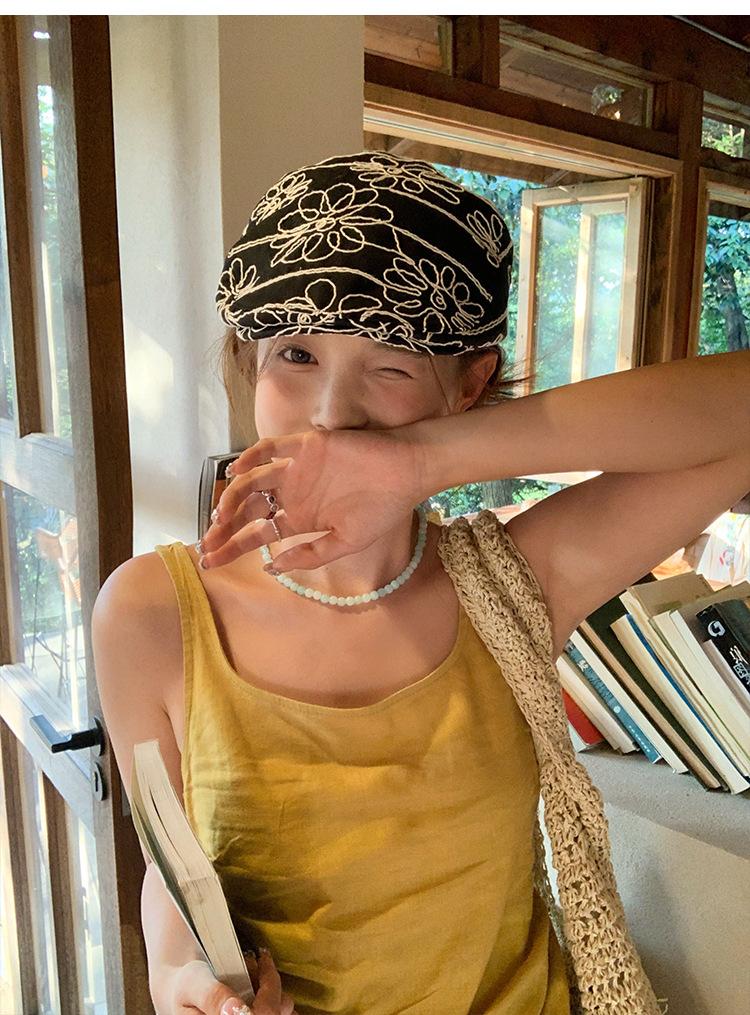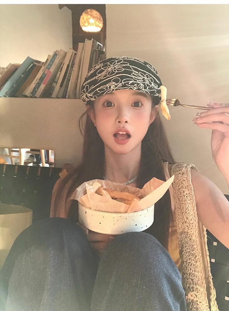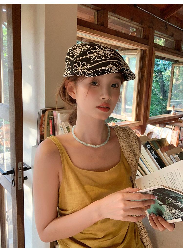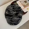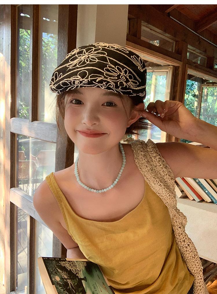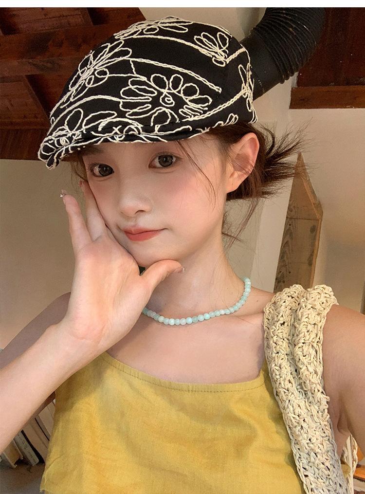 Sombrero Avanzado de Estilo Japonés Nuevo para Mujer Verano Jacquard Sombrero Negro Casual Combinable Rostro Mostrado Boina Pequeña Sombrero de Pintor Bordado