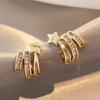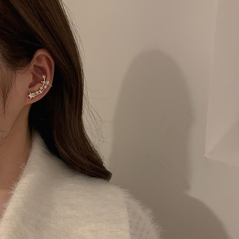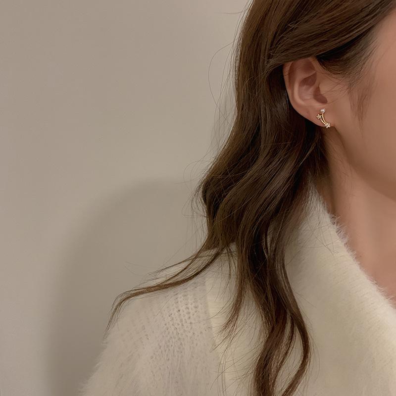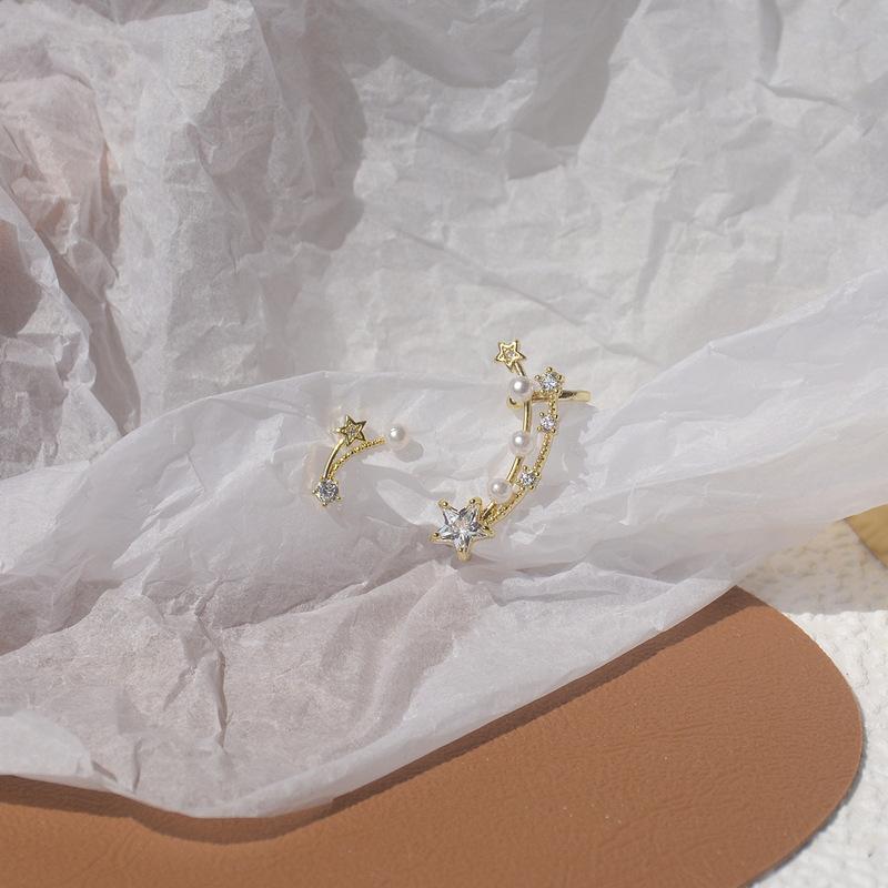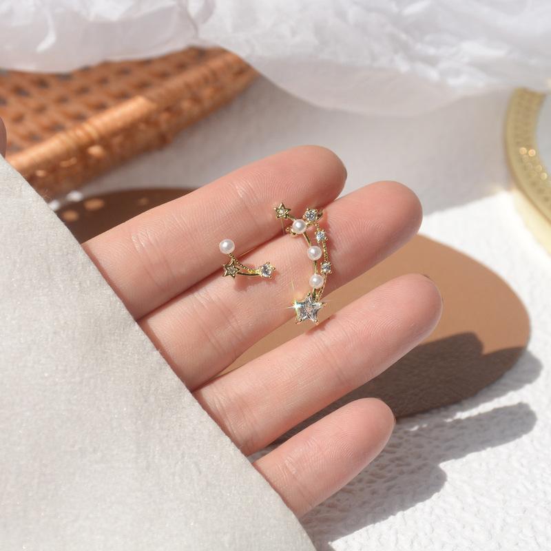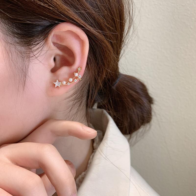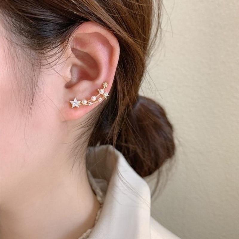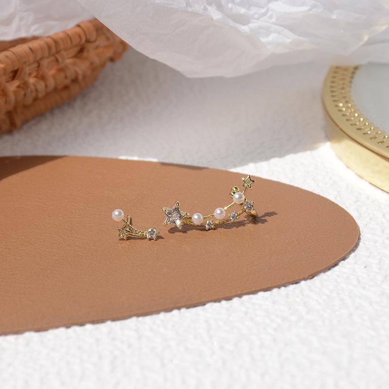 Pendientes asimétricos de una pieza con forma de estrella de cinco puntas y perla de aguja de plata S925 para mujer, 2021