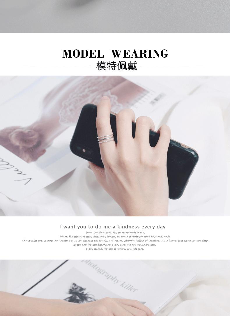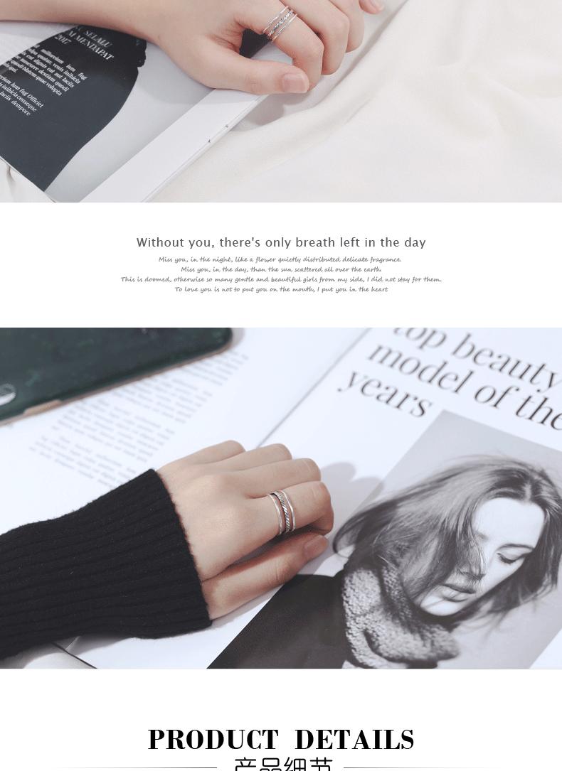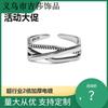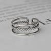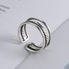 Anillo de plata lisa retro de tres líneas de sarga abierta de línea simple estilo coreano anillo plata joyería de mano