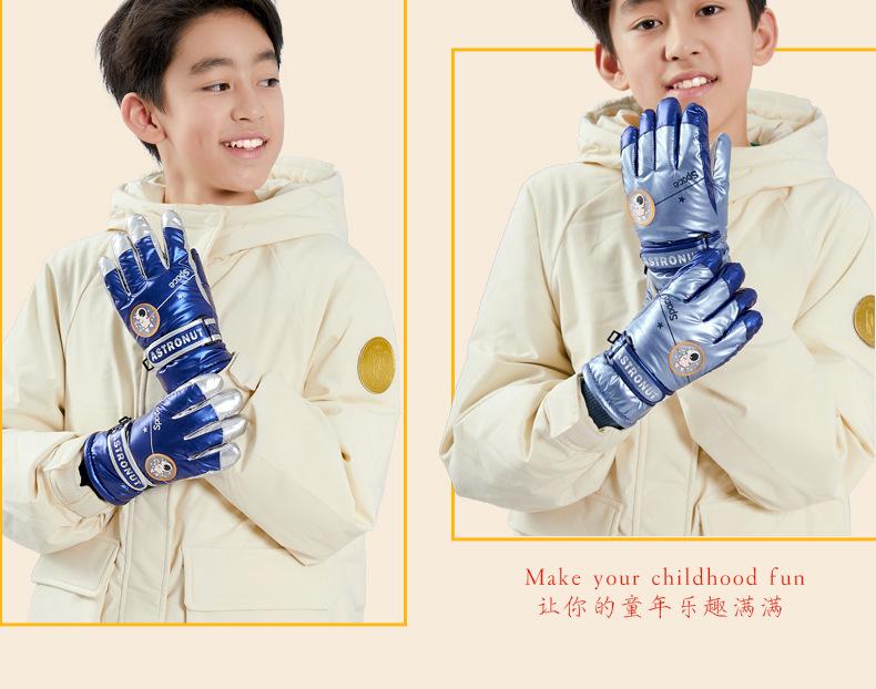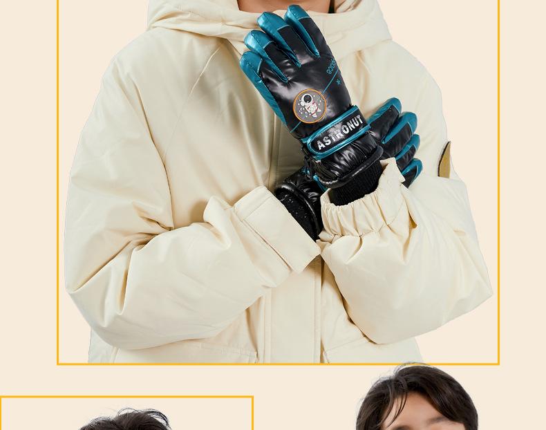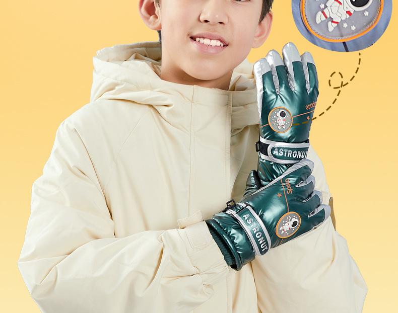 Guantes de esquí para niños con forro polar a prueba de viento, gruesos y cálidos, para exteriores, con dibujos animados, para niños y niñas, para montar a caballo.