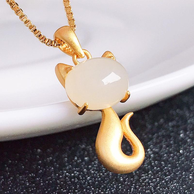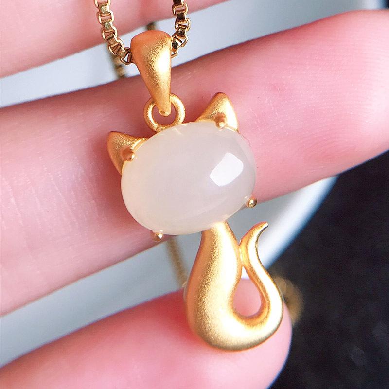 Collar artesanal de oro antiguo de plata esterlina s925 con colgante de jade hetiano natural, colgante de moda para mujer, suministro en vivo de celebridades en línea