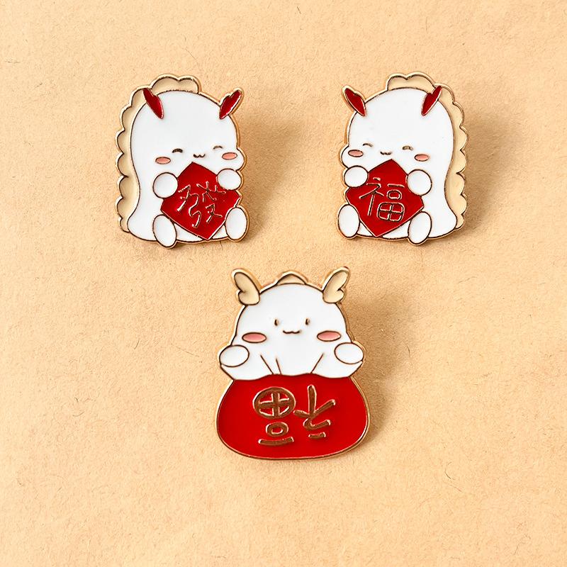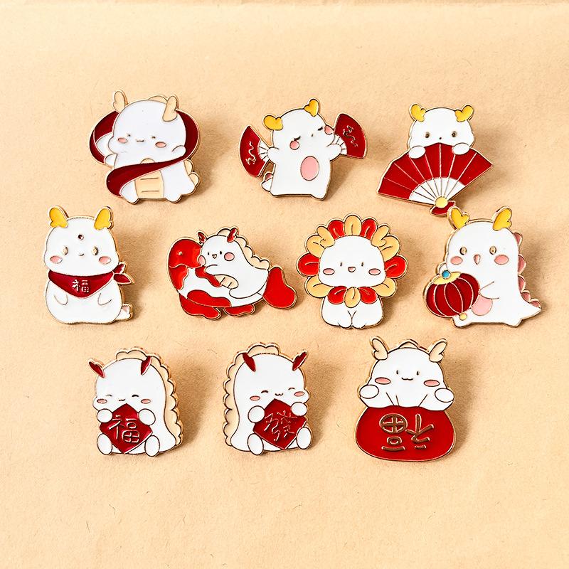 Año del Dragón nuevo metal broche pequeño insignia linda creativa año de nacimiento Dragón Rojo ropa pin decorativo accesorios