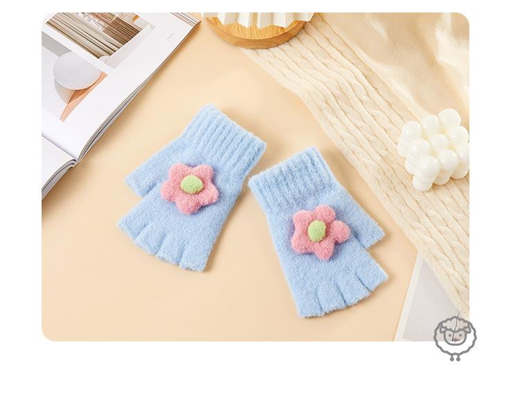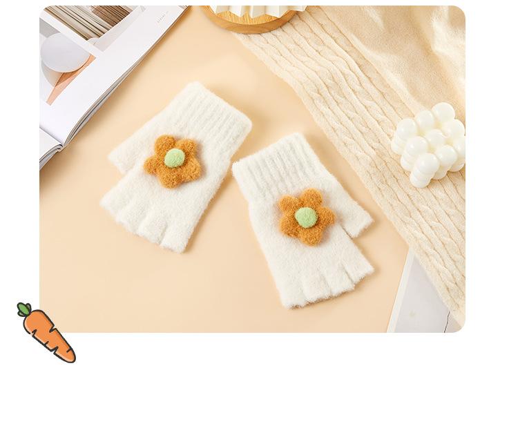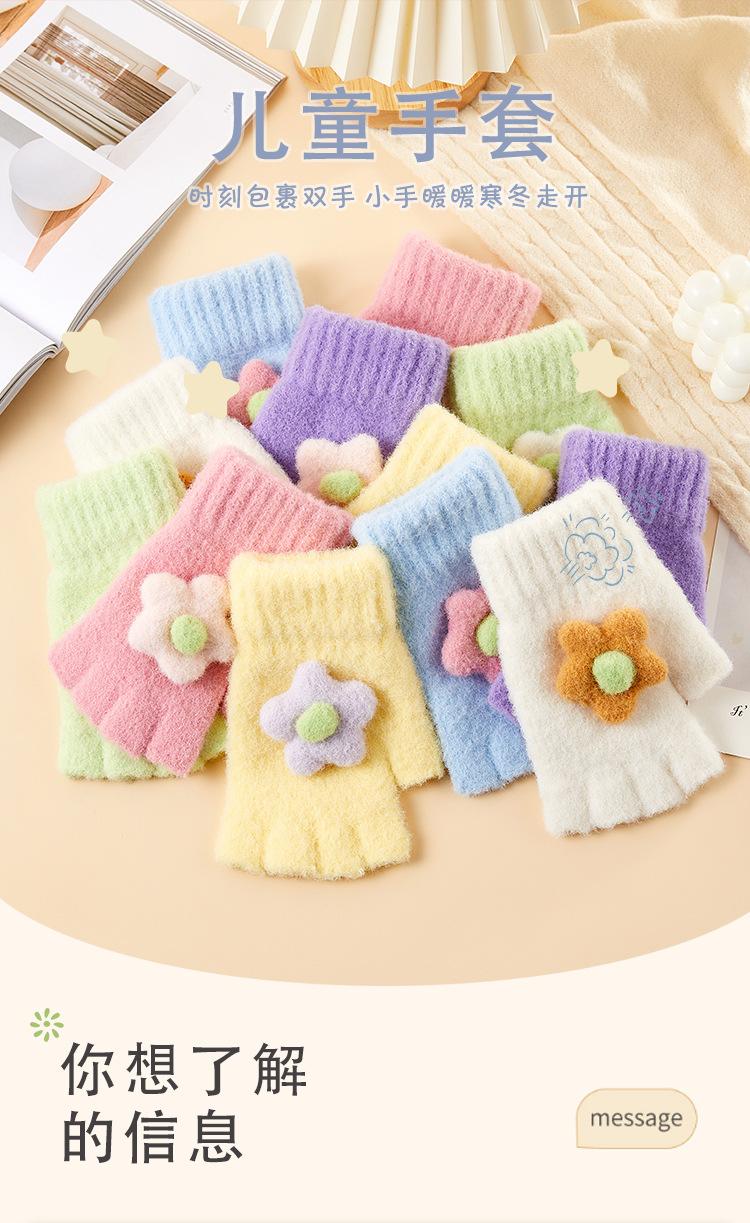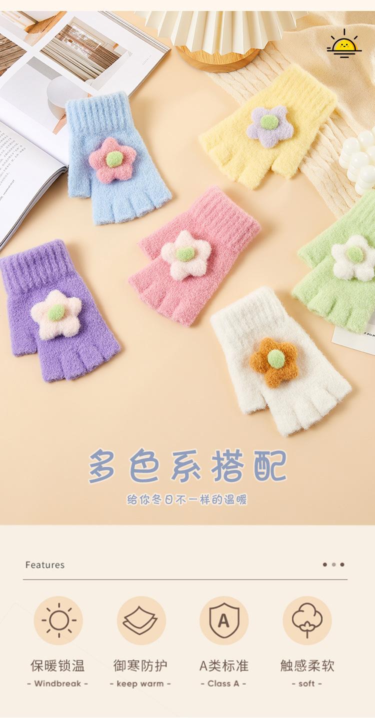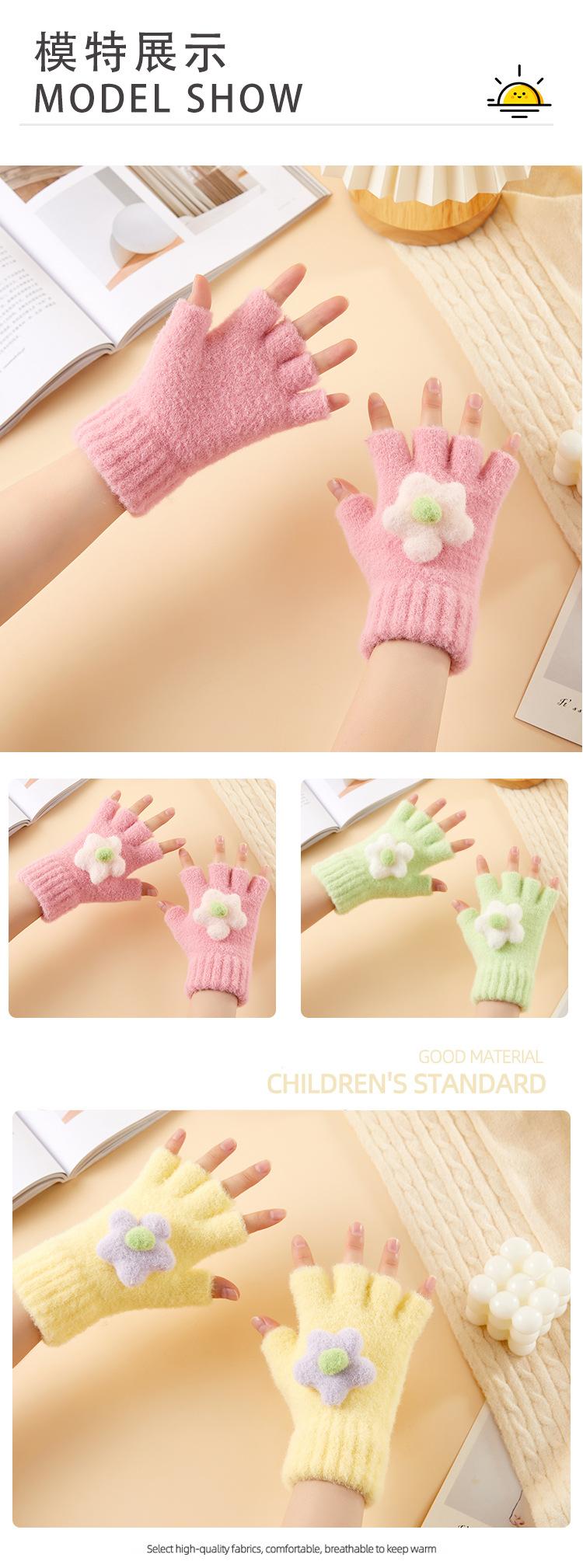 Guantes de Medio Dedo para Otoño e Invierno 2025 para Niños de Terciopelo Cálidos y a Prueba de Frío Guantes de Punto sin Dedos de Dibujos Animados para Hombre y Mujer