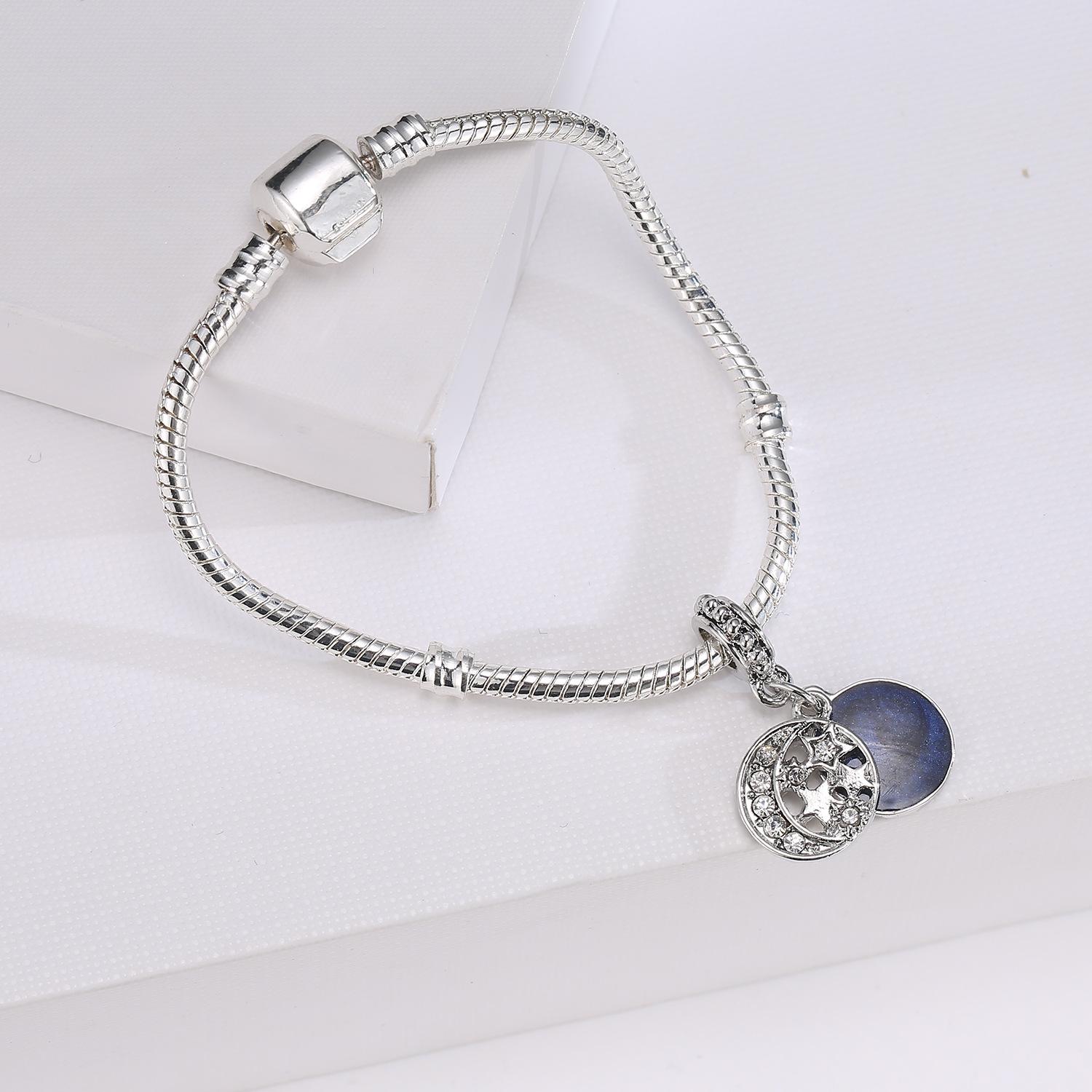 Pulsera Colgante de Aleación Estilo Étnico DIY Creativo Estrella y Luna Accesorios de Joyería Romántico Cielo Estrellado Colgante de Collar Adornos de Mano