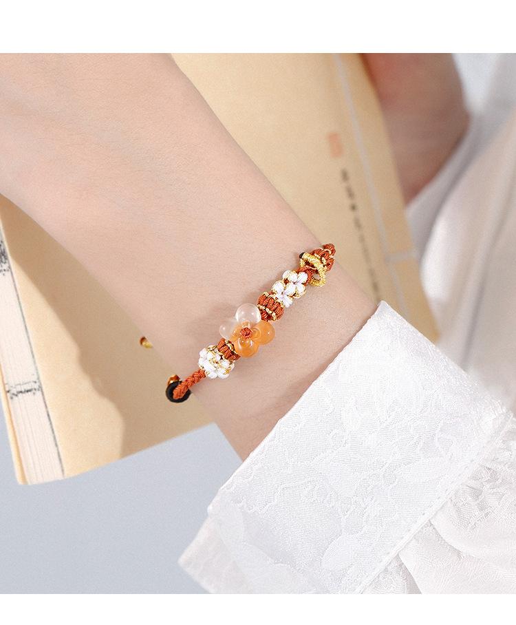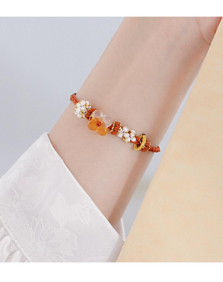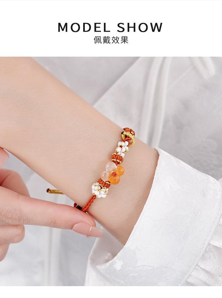 Pulsera de otoño noche pequeño osmanto cuerda roja tejida a mano pulsera de flor pequeña nicho amigas regalo para hombres y mujeres