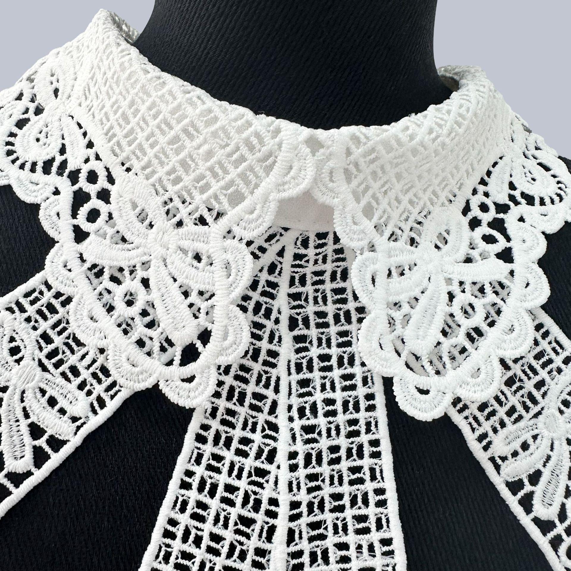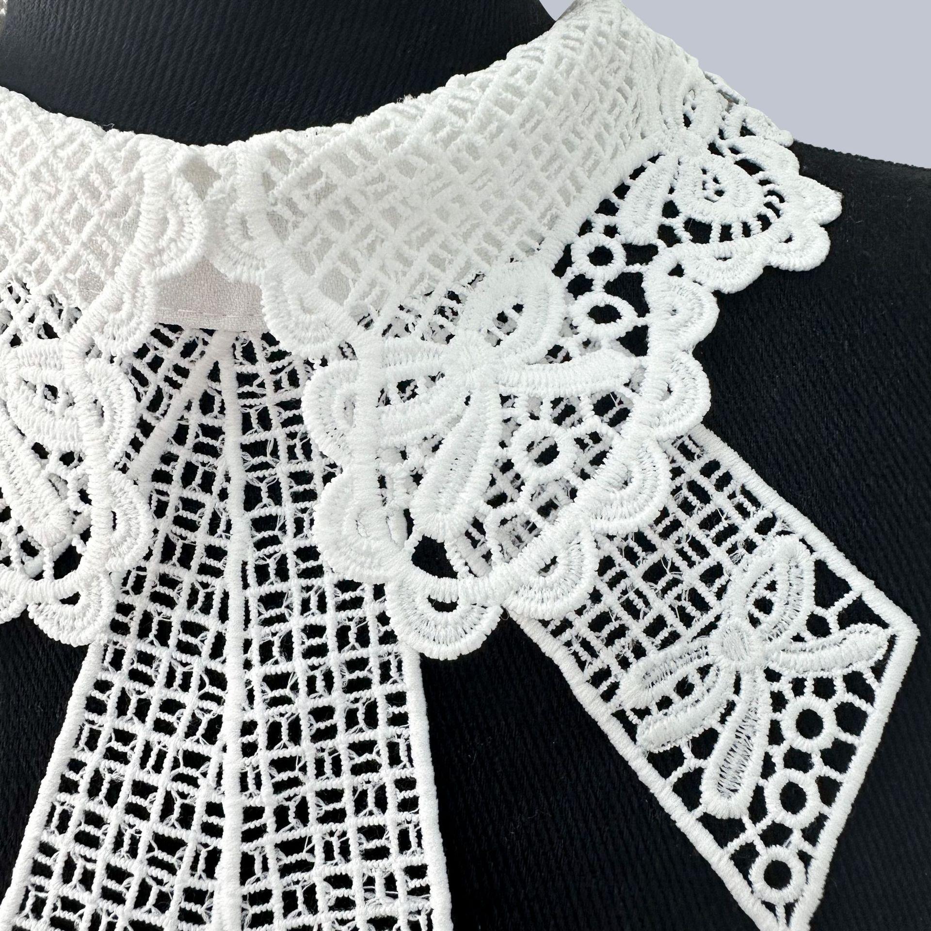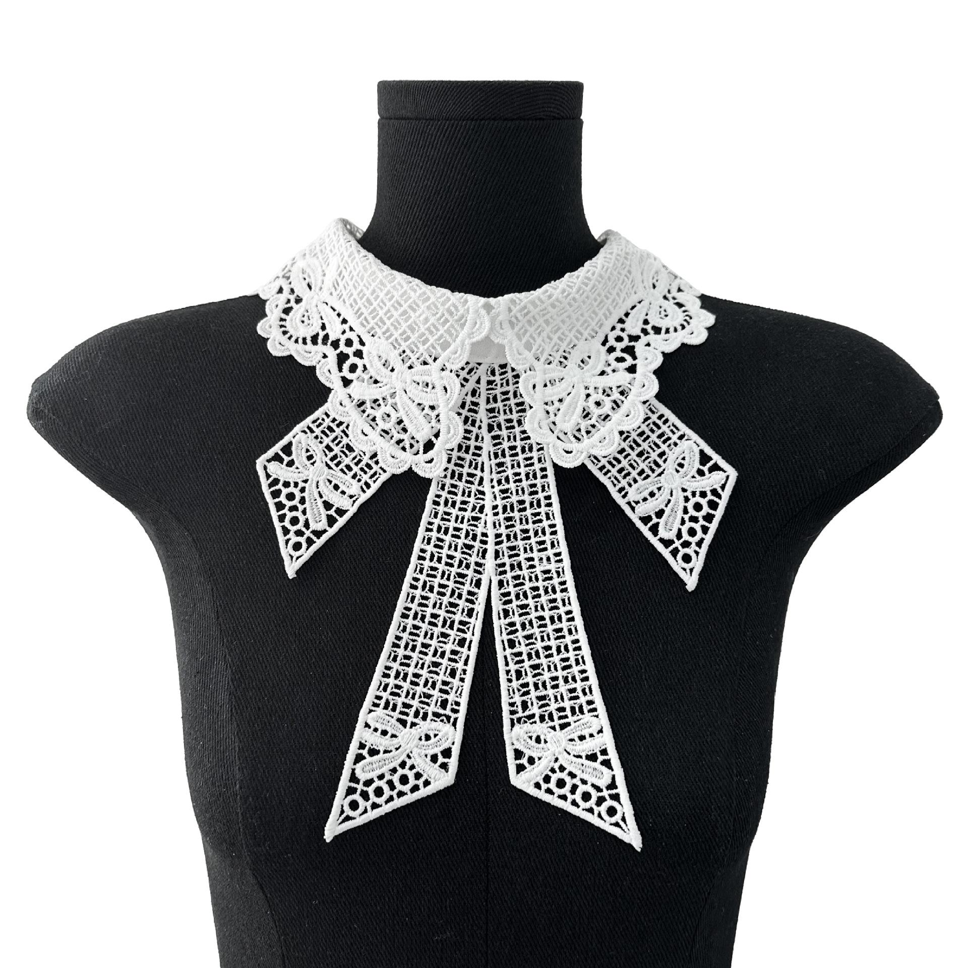 Camisa de encaje bordado de estilo artístico con cuello falso, corbatín de mariposa para mujer, suéter de fondo para otoño e invierno, cuello decorativo de temperamento