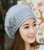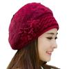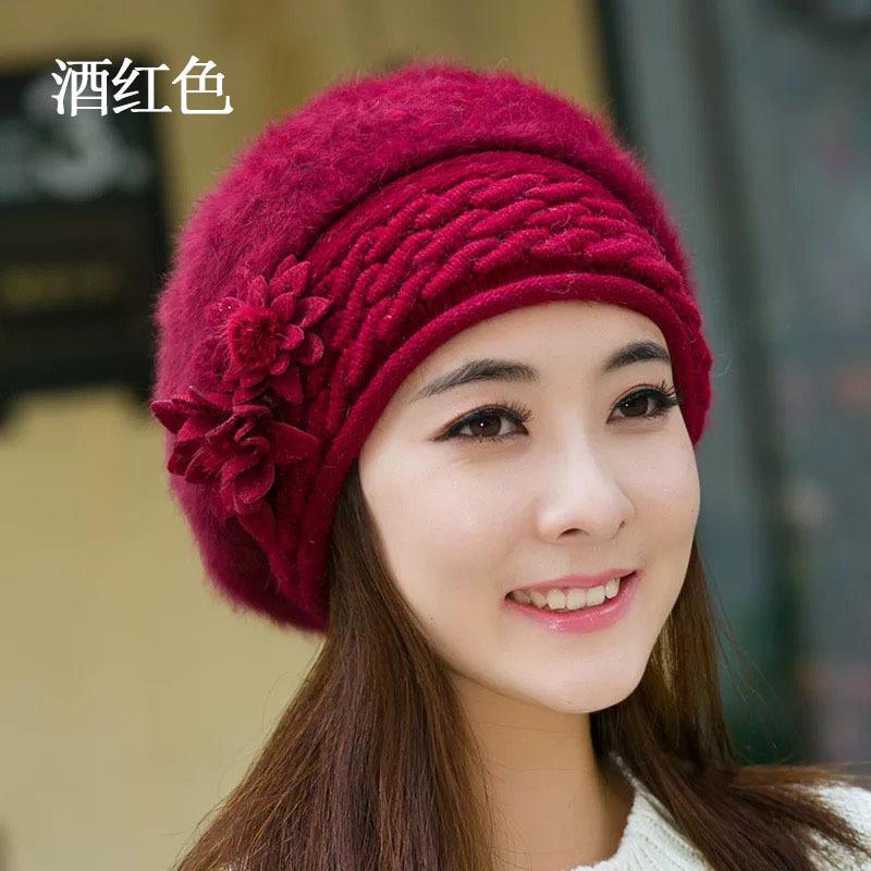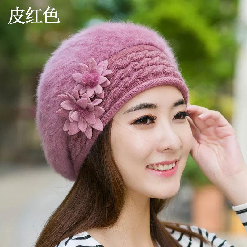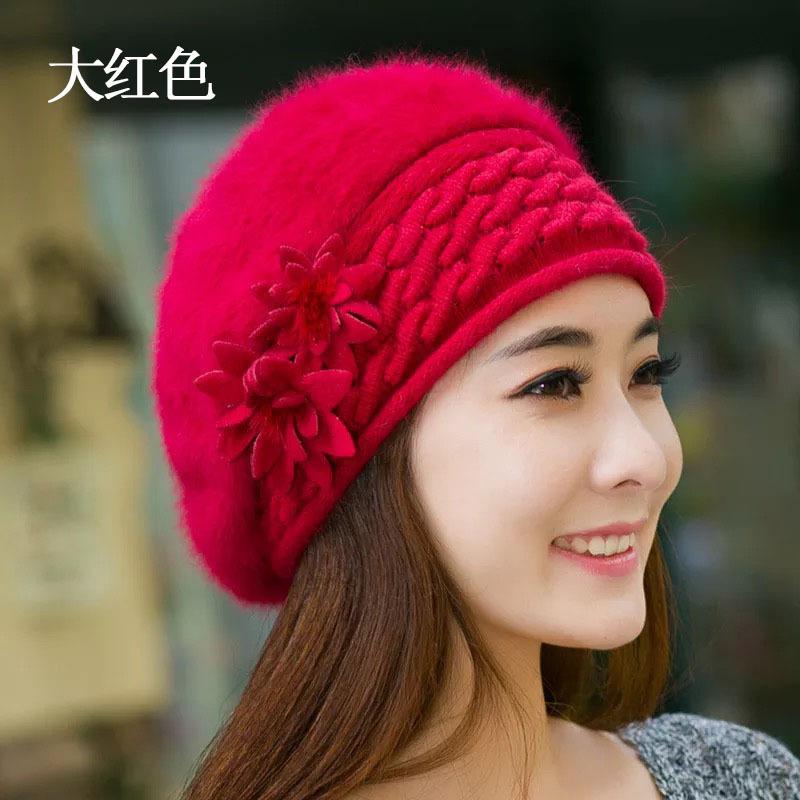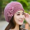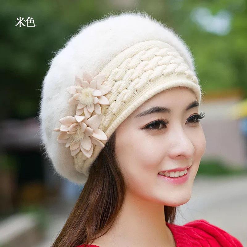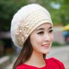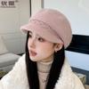 Sombrero de invierno para mujer, moderno gorro de piel de conejo, boina con lengua de pato, gorro de lana de punto grueso y cálido estilo coreano para otoño e invierno.