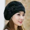 Gorro de invierno para mujer, moderno gorro de piel de conejo, boina de lengua de pato, gorro de lana de punto coreano grueso y cálido para otoño e invierno.