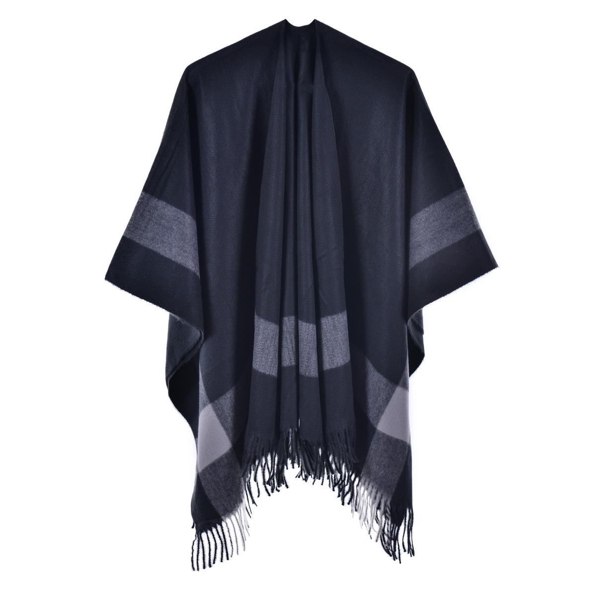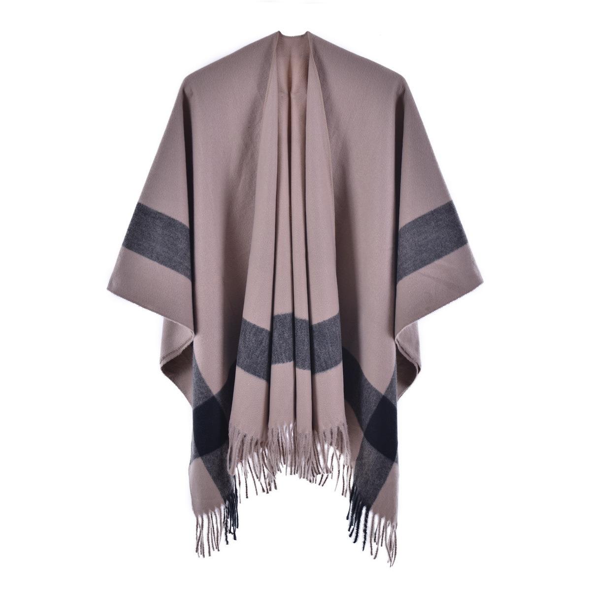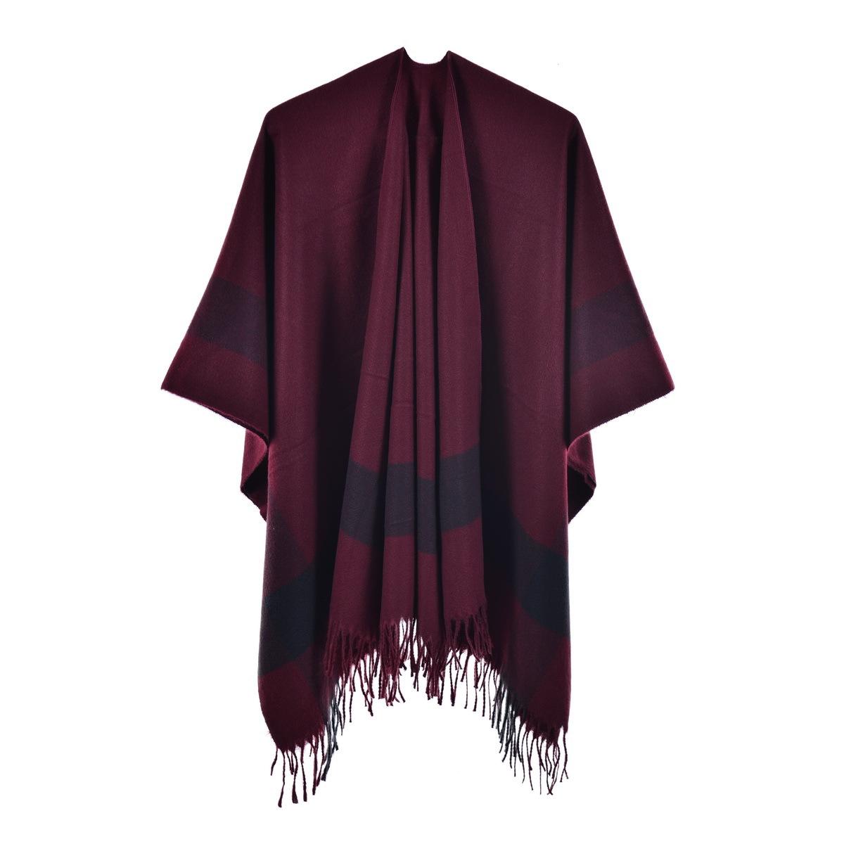 Chal cálido de marca europea y americana al por mayor para damas, primavera, con borlas divididas, a rayas, a cuadros, capa Amazon
