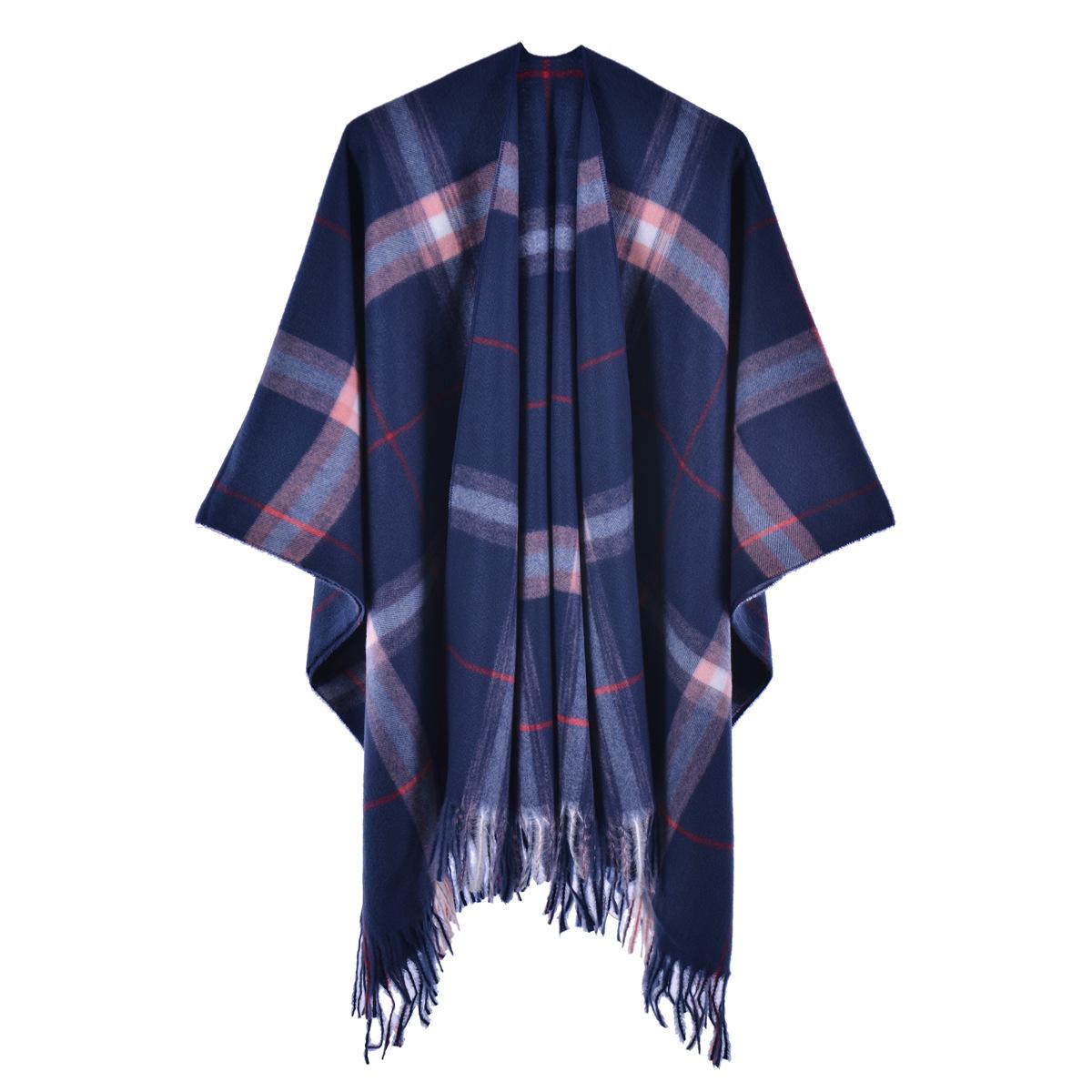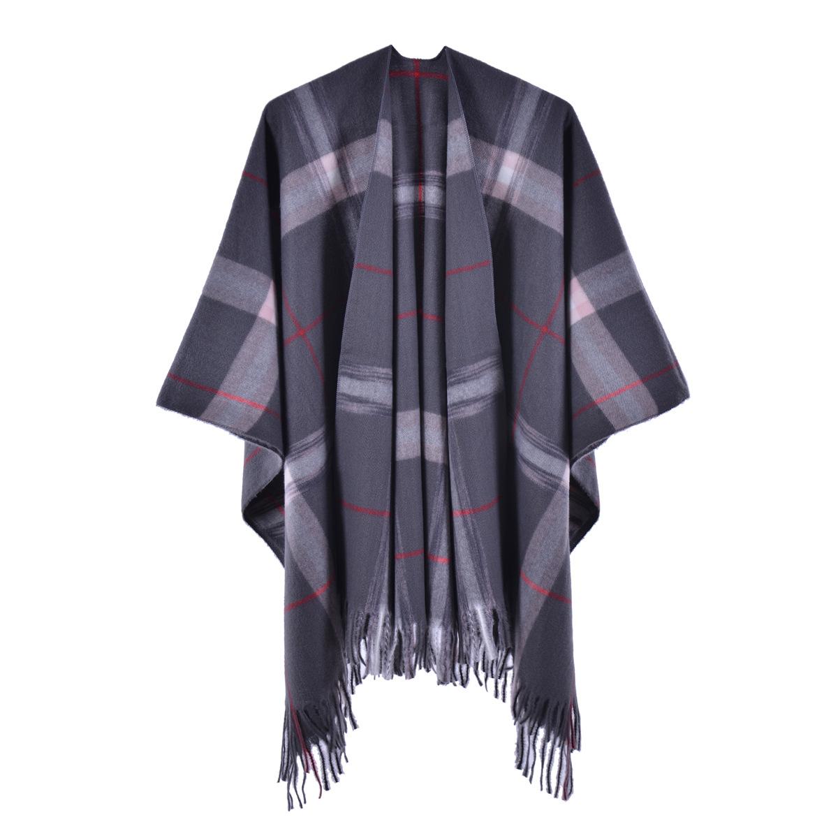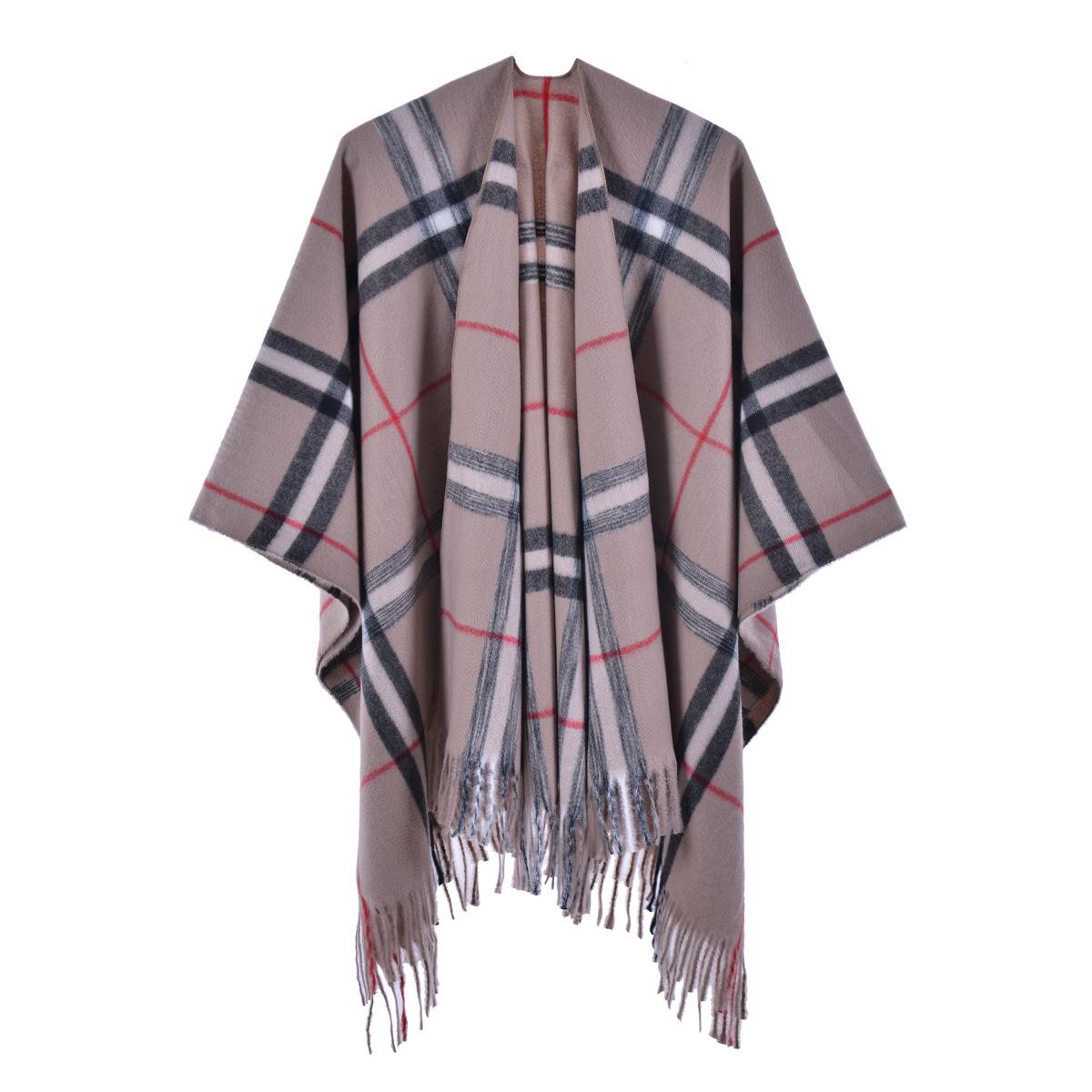 Chal cálido de marca europea y americana al por mayor para damas, primavera, con borlas divididas, a rayas, a cuadros, capa Amazon