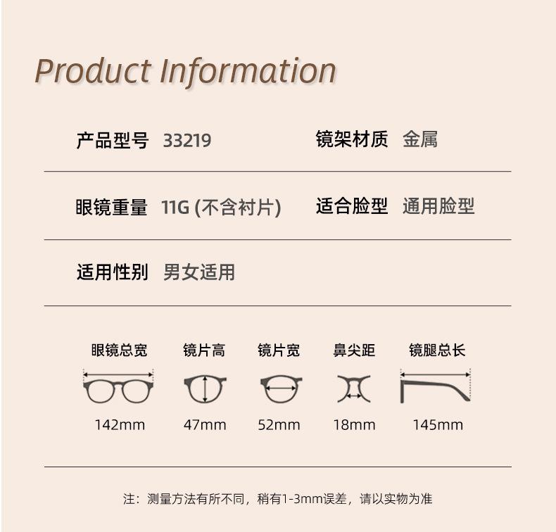 Nuevas gafas de metal literarias retro de cara lisa para mujer de alta gama, gafas Danyang al por mayor, se pueden equipar con grado de miopía