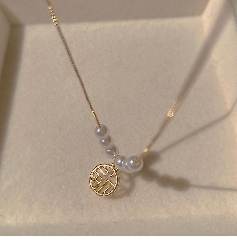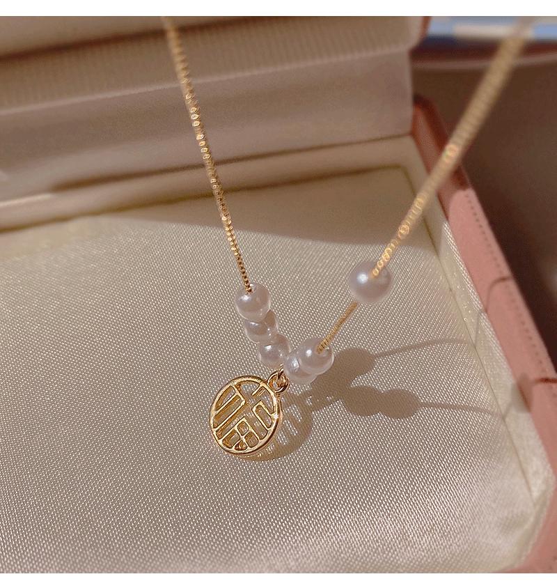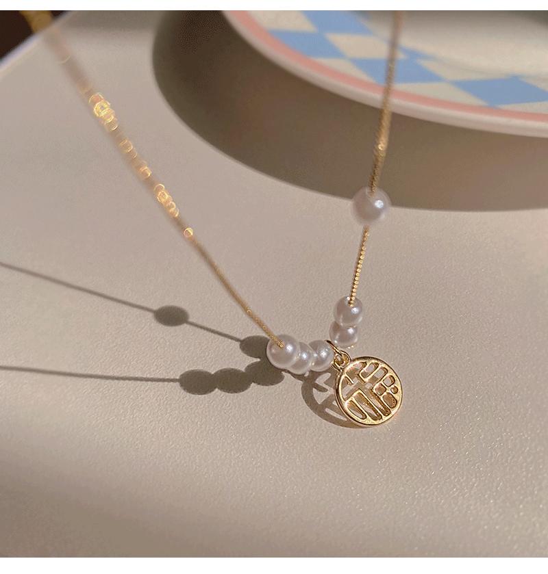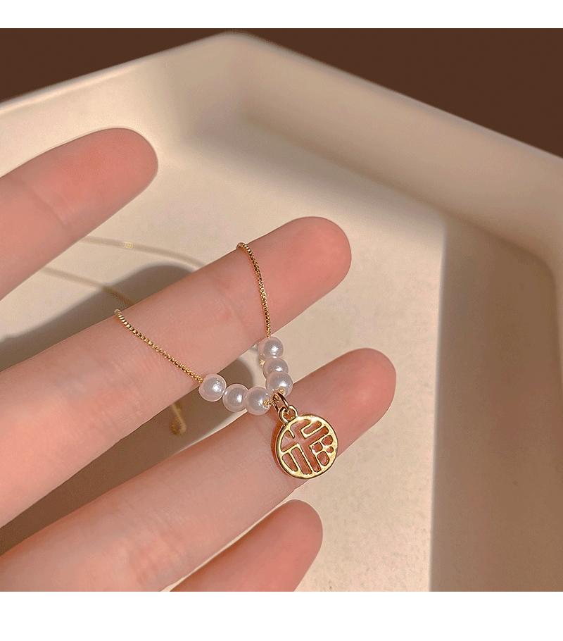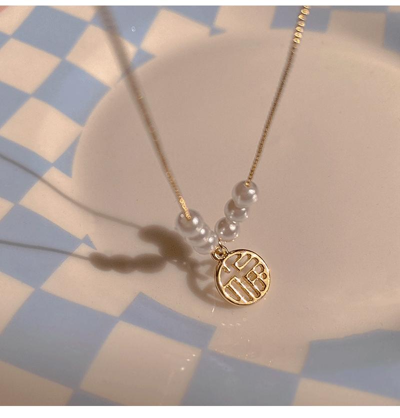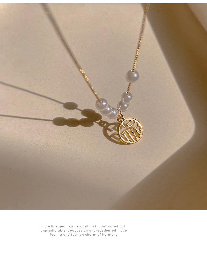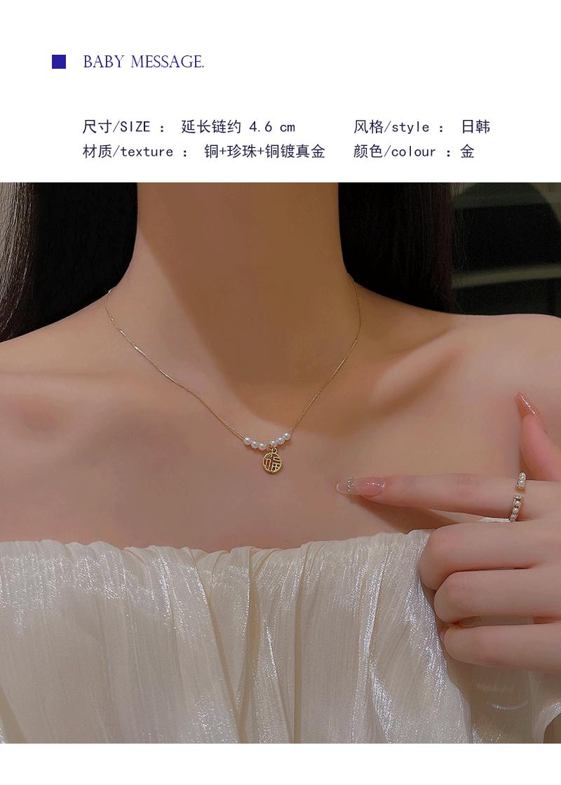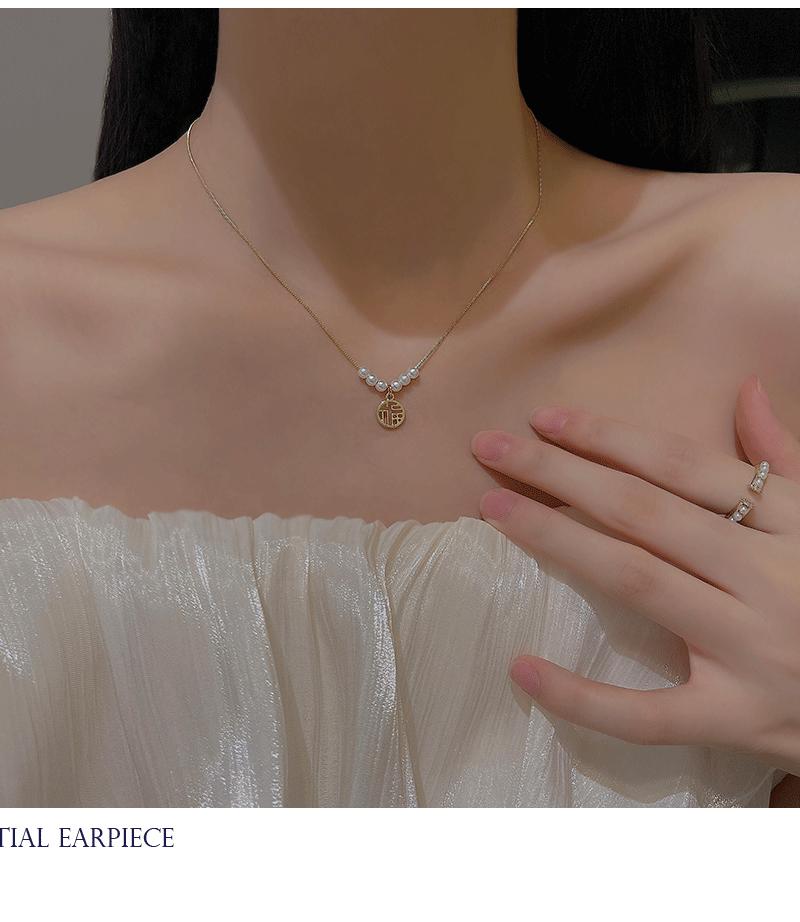 Collar con colgante de perla de la fortuna para mujer, de verano, ligero, de lujo, con diseño de letras de nicho, cadena fina para clavícula, cadena para suéter, cadena para el cuello, a la moda.