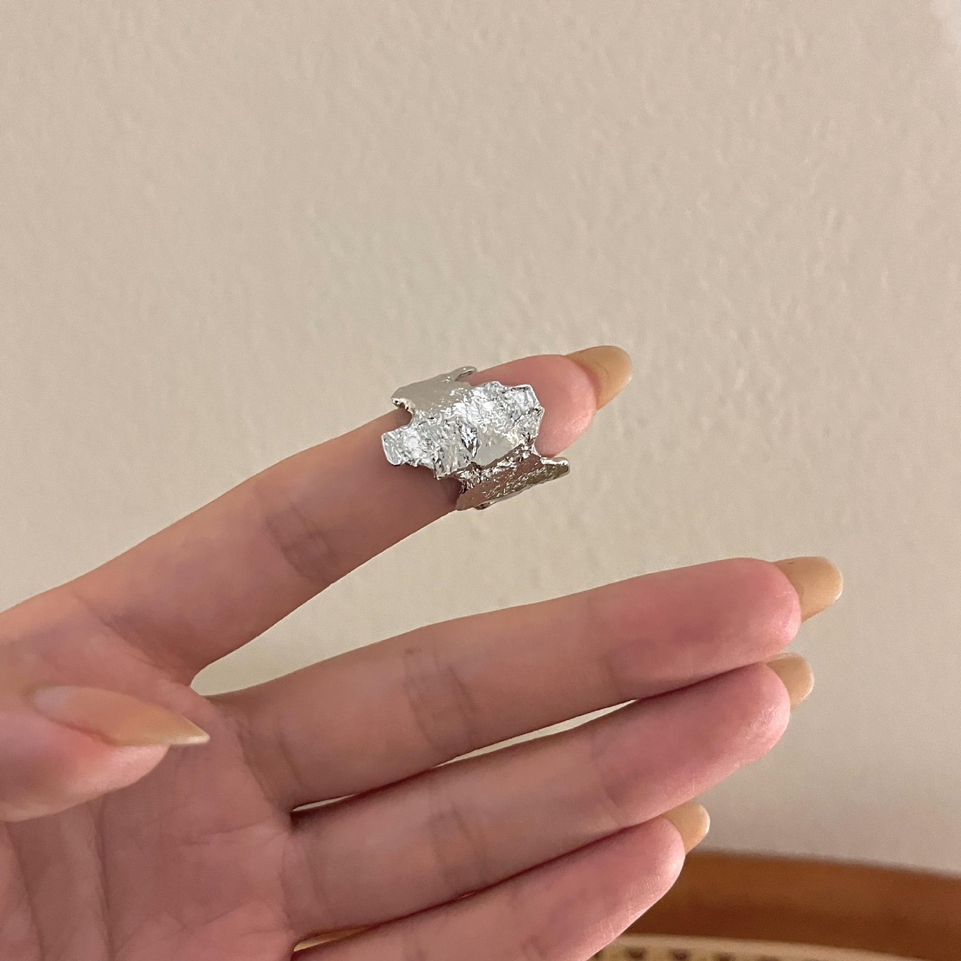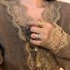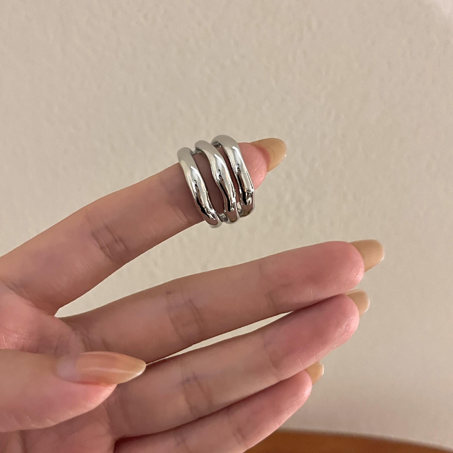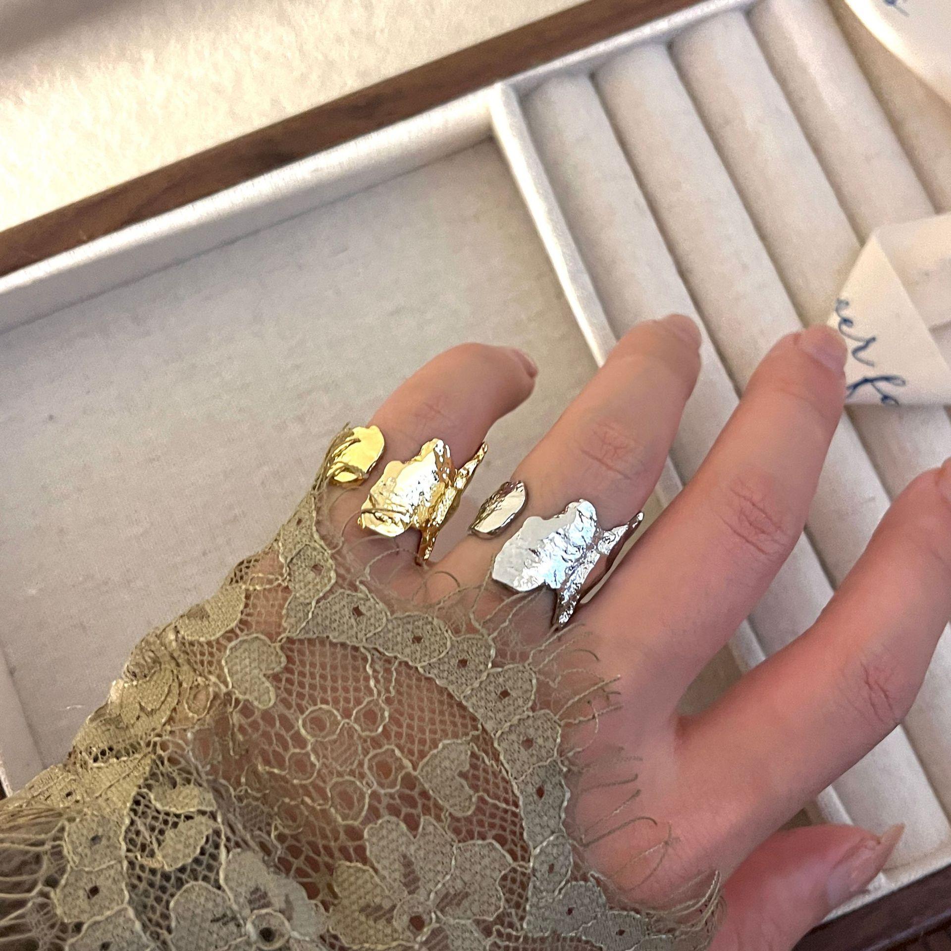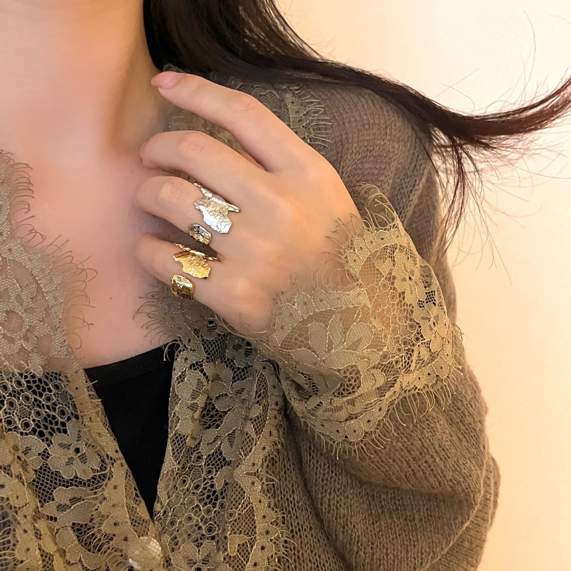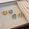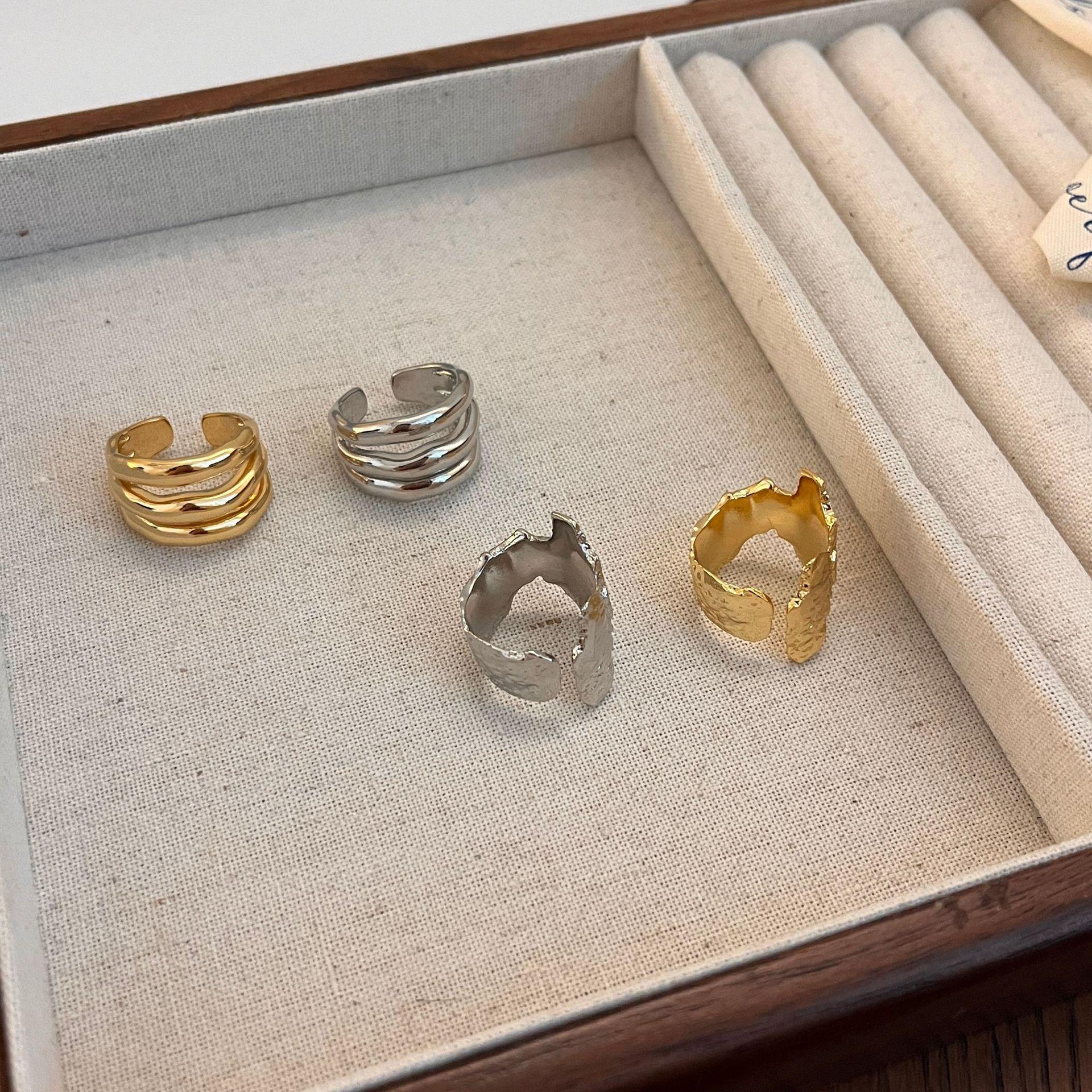 Anillo de apertura ancha con textura de lava irregular de oro auténtico bañado en cobre, estilo europeo y americano, anillo de onda de tres capas.