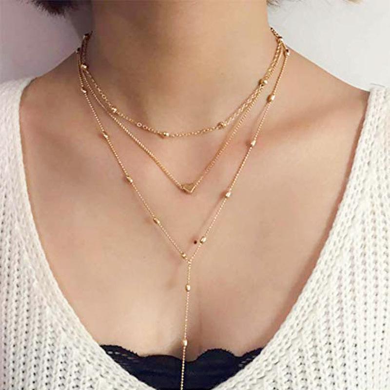 Collar multicapa con borlas y cadena de clavícula con forma de corazón geométrico retro de moda transfronteriza europea y americana