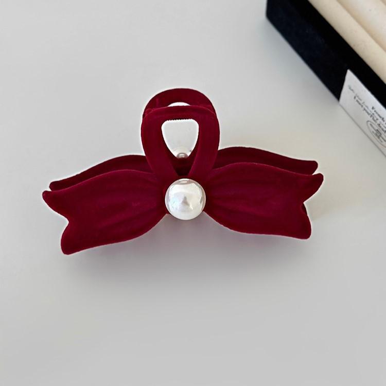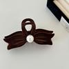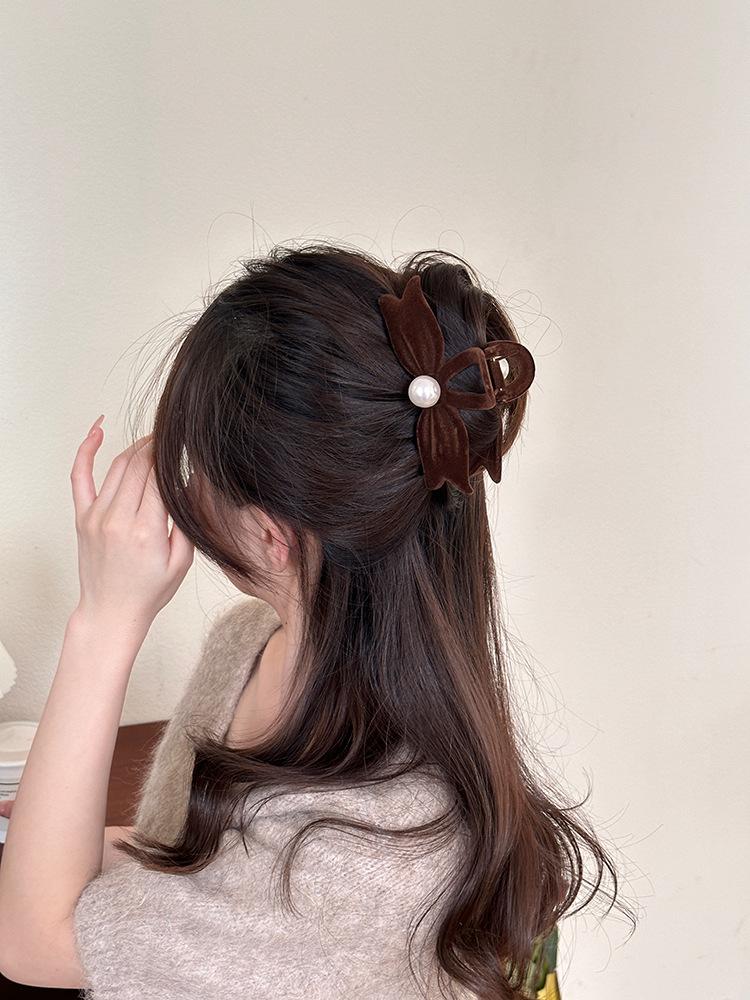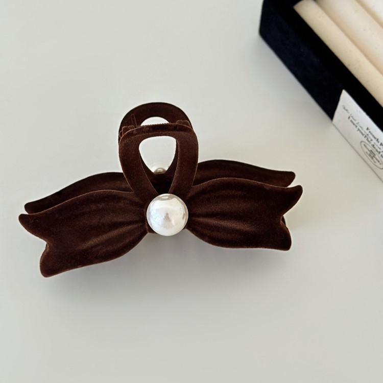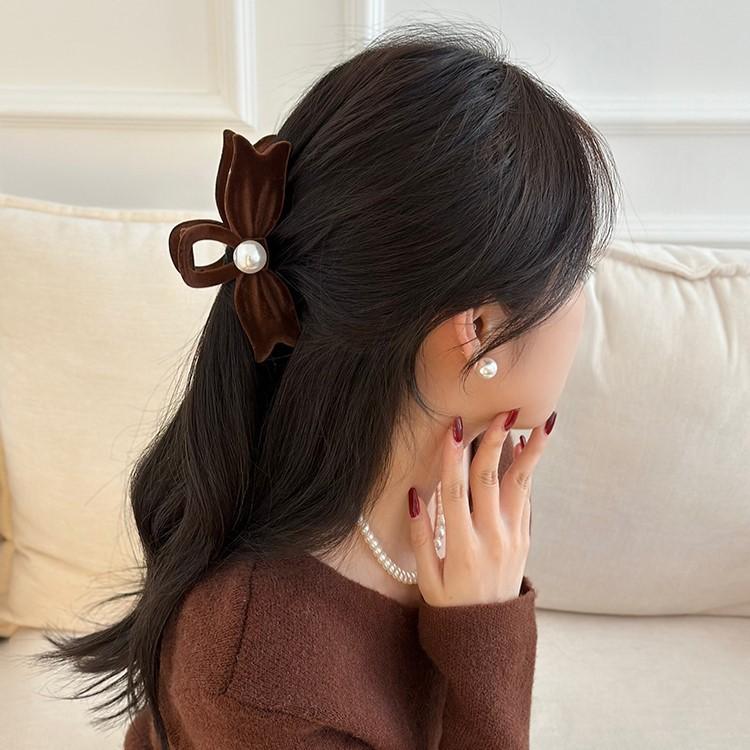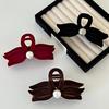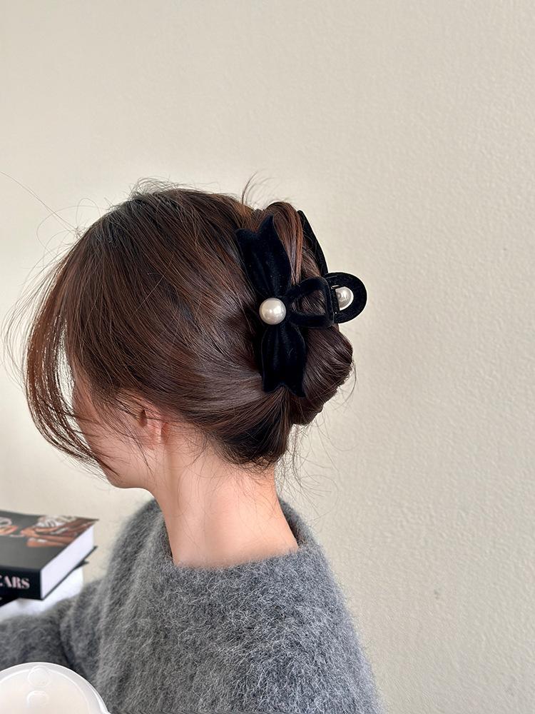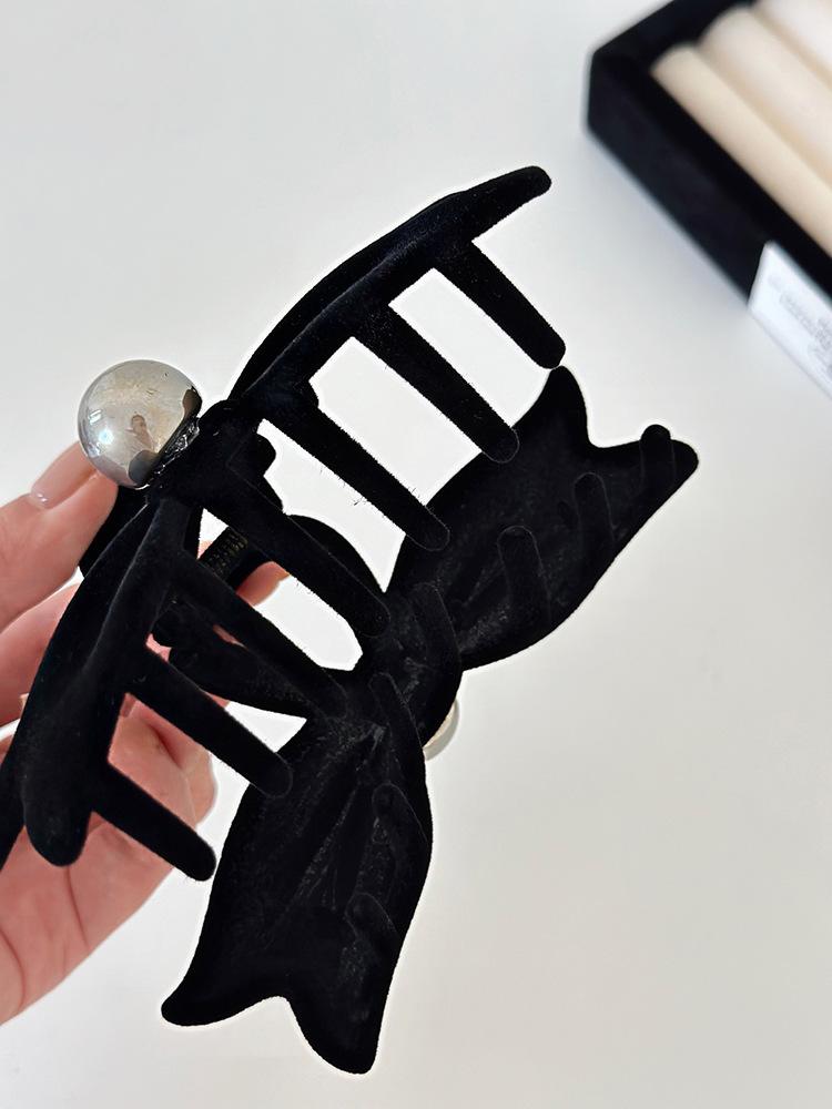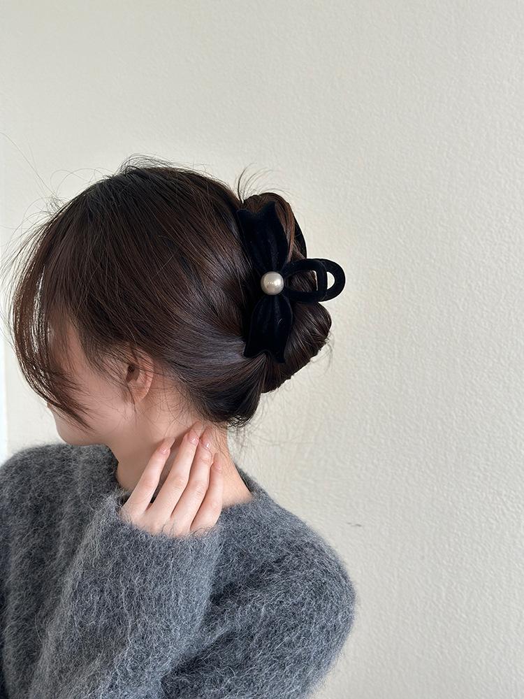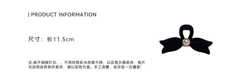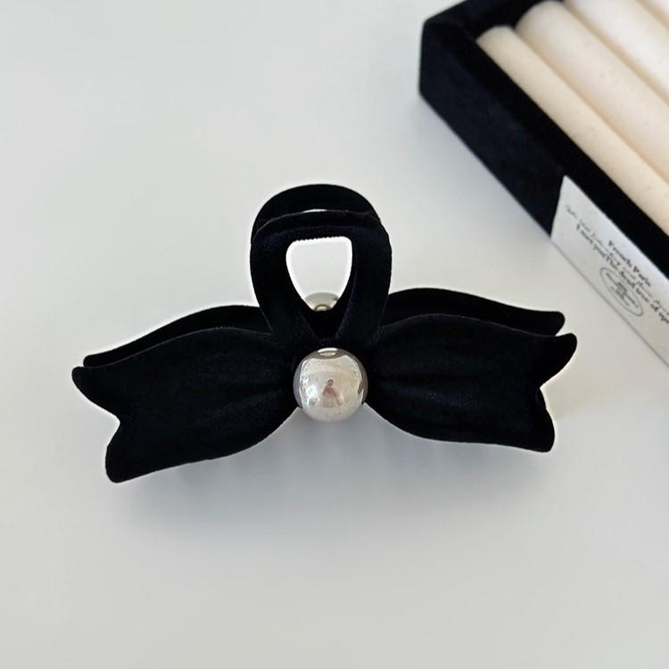 Horquilla para el pelo con lazo de terciopelo negro de alta calidad de estilo francés con perlas, horquilla grande para la espalda para mujer, pinza de tiburón para otoño e invierno.