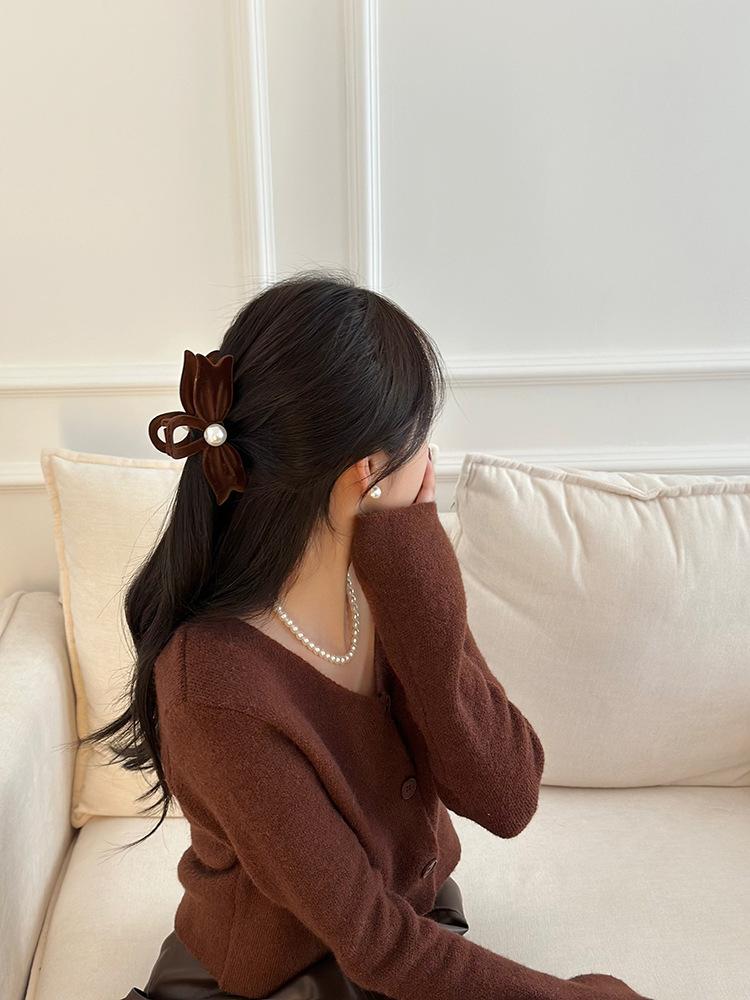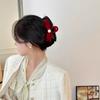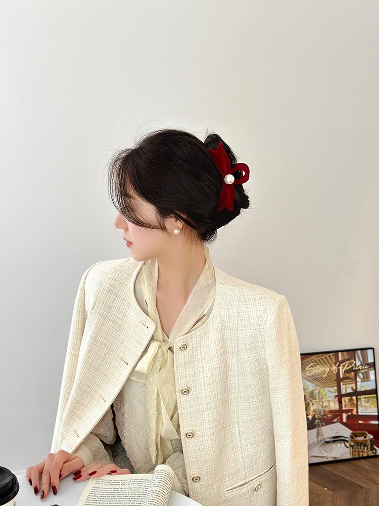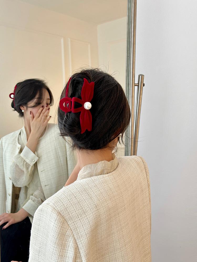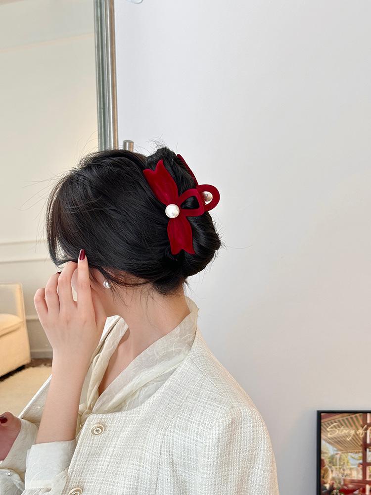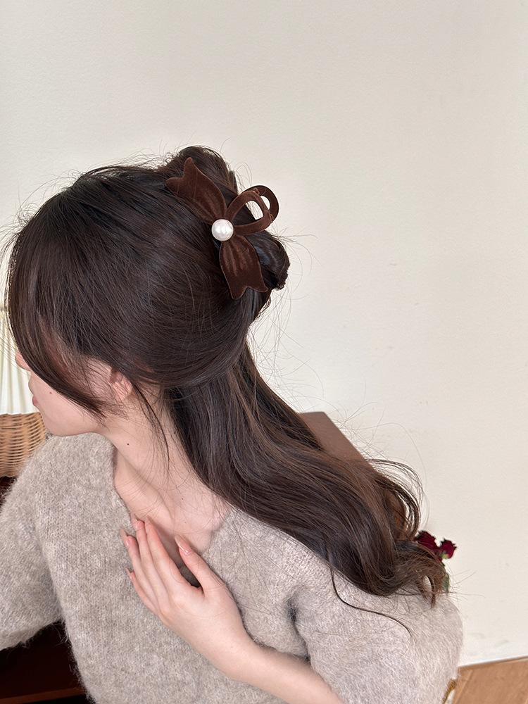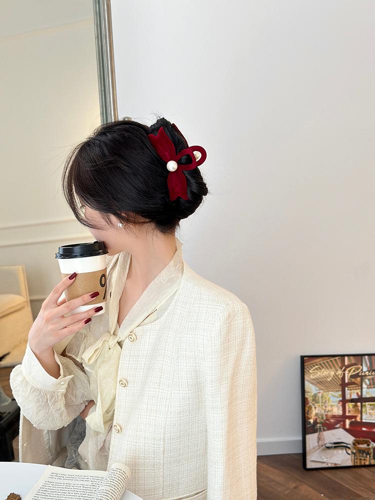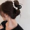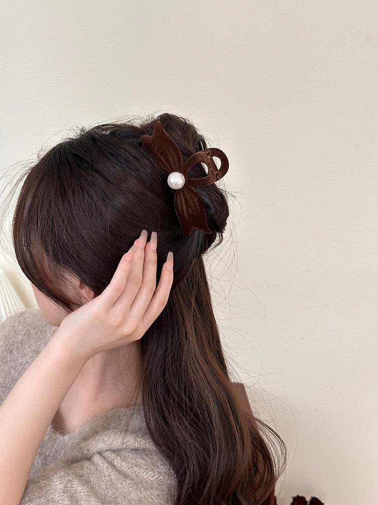 Horquilla para el pelo con lazo de terciopelo negro de alta calidad de estilo francés con perlas, horquilla grande para la espalda para mujer, pinza de tiburón para otoño e invierno.