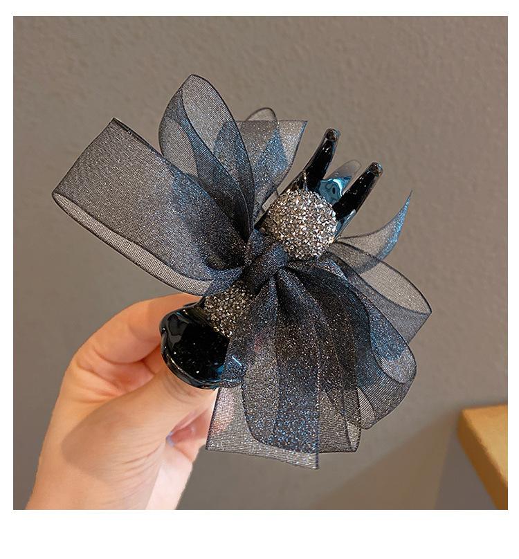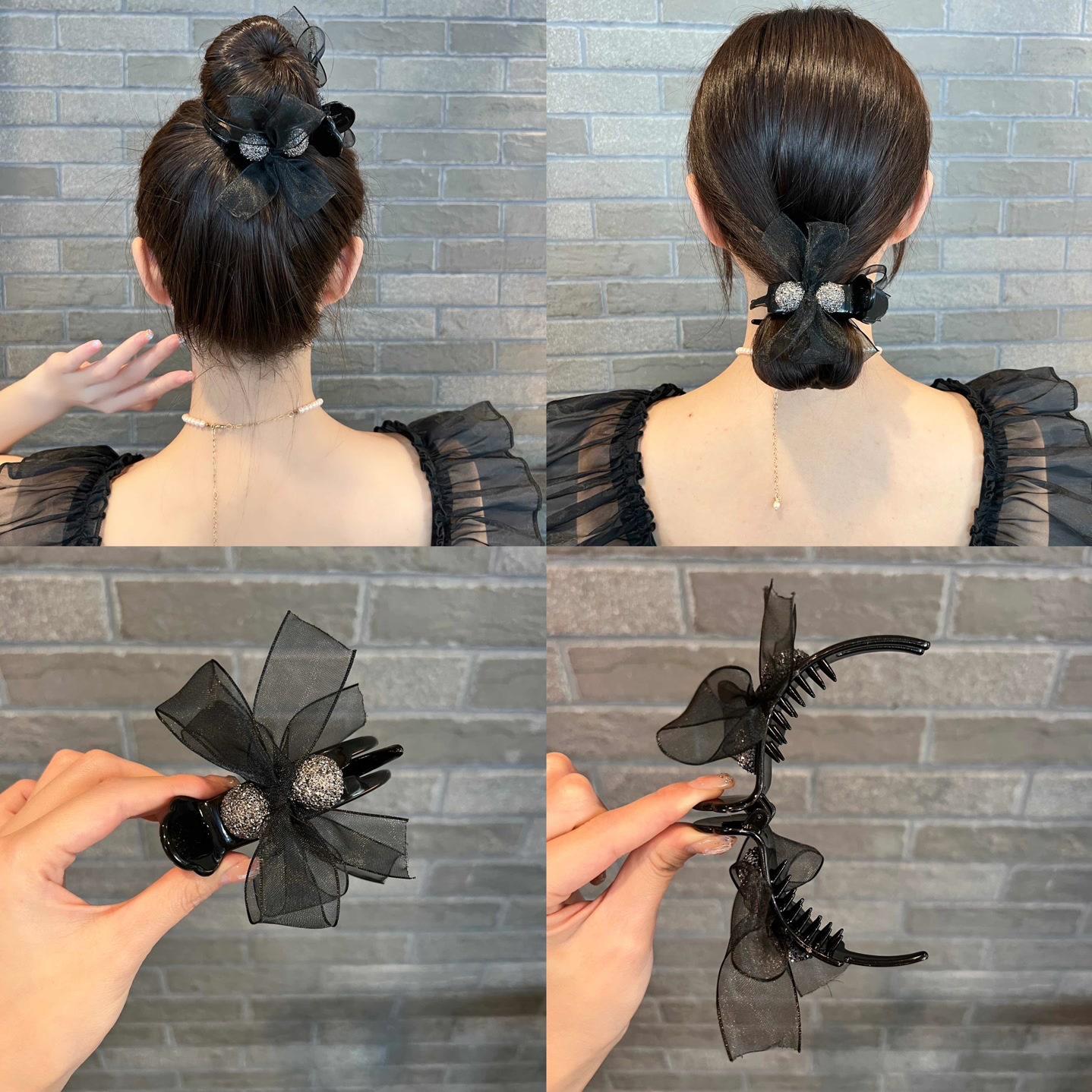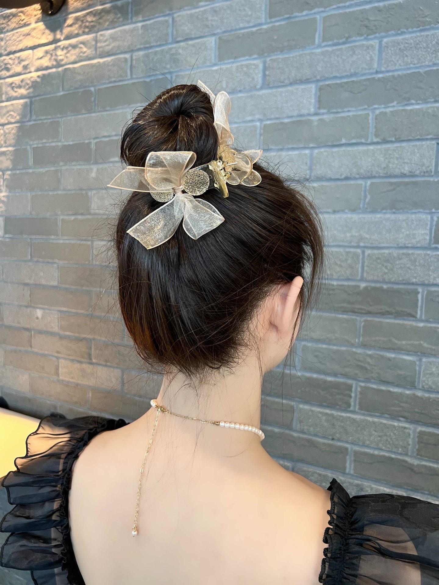 Clip de lazo con cabeza de bola de malla, gran recogido, mariposa, horquilla de perla, accesorios para el cabello hechos a mano