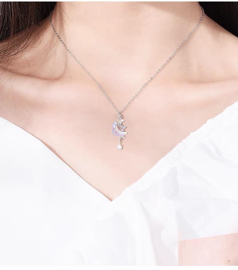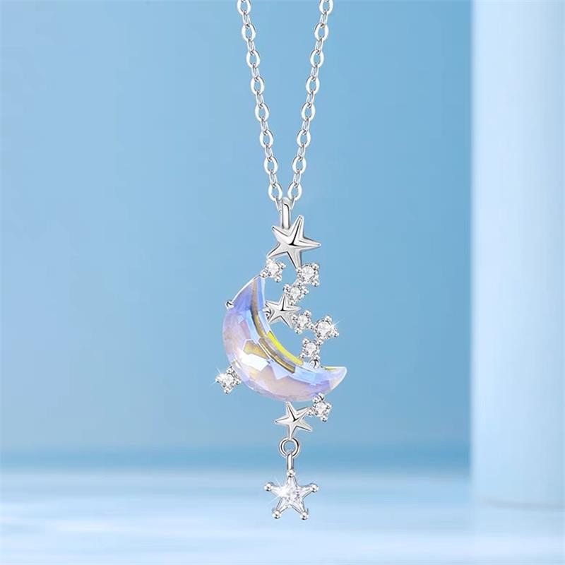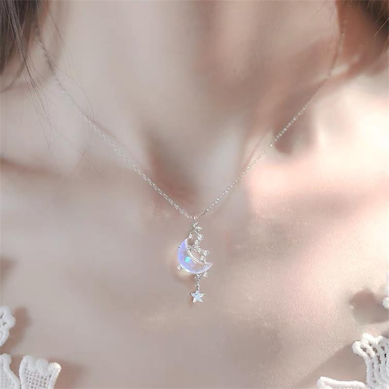 Collar con colgante de estrella y río Moon Splash para mujer, con piedra esmaltada Aurora, estrella y luna, cadena de clavícula, luz de lujo de alta calidad, nicho romántico de ensueño