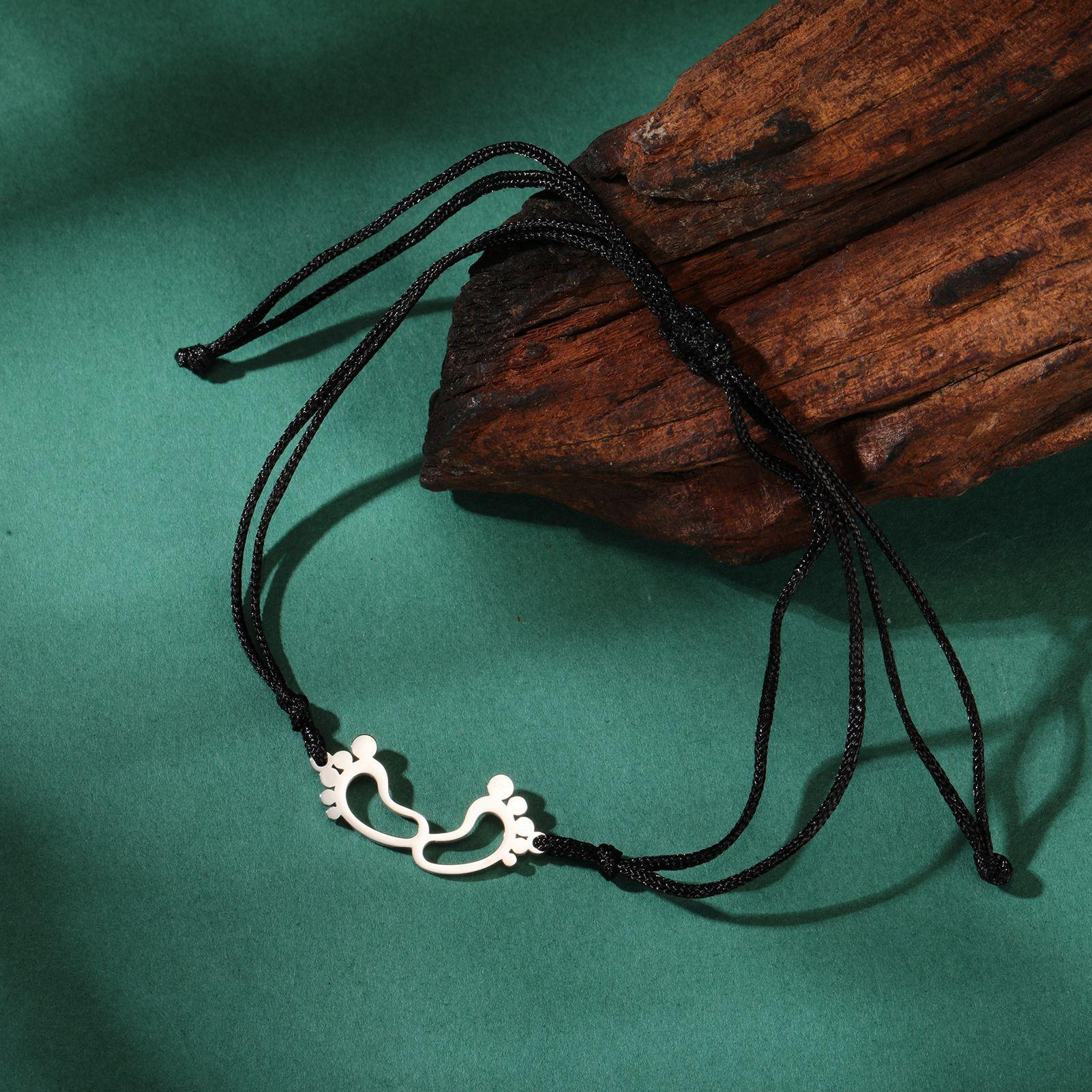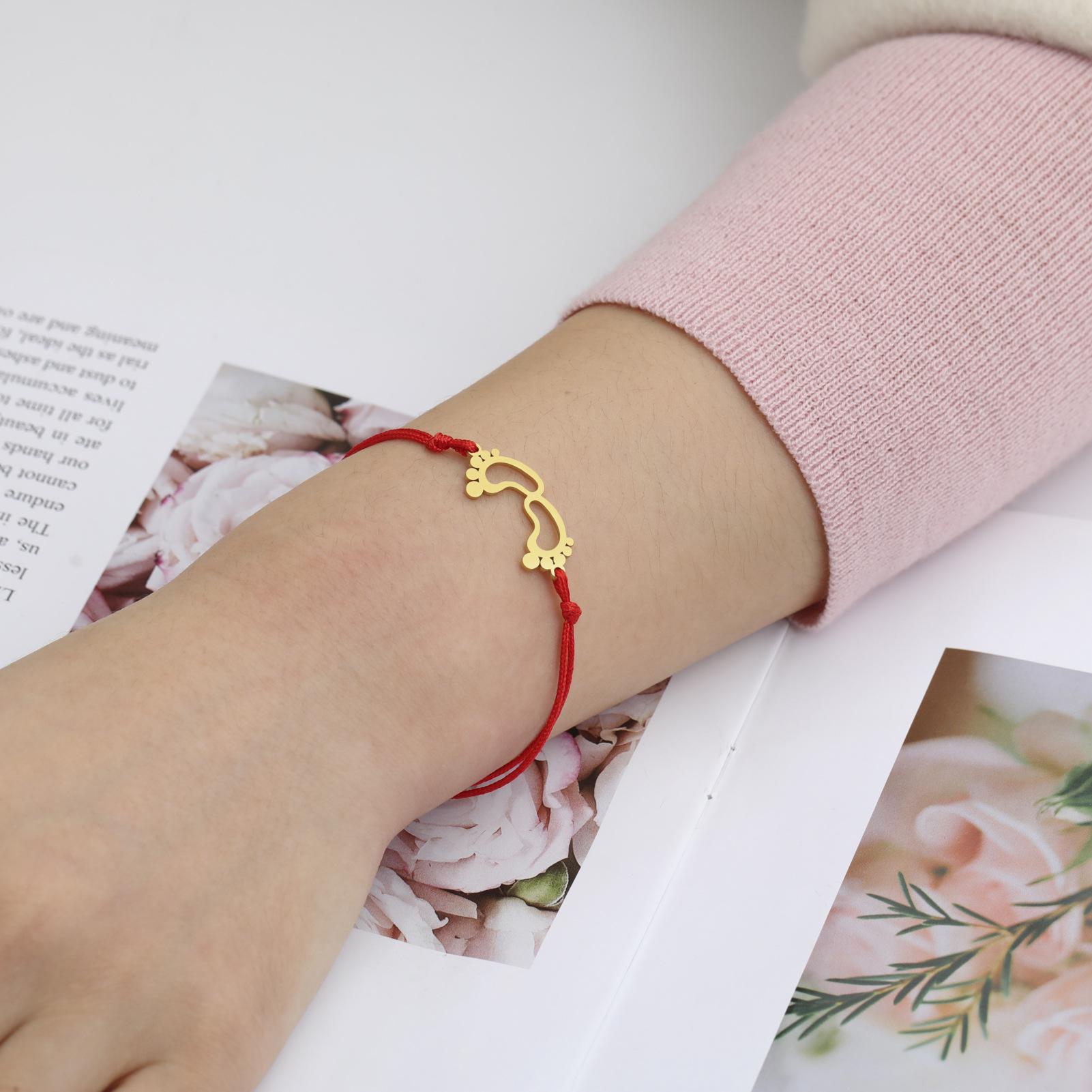 Pulsera de dijes colgantes de huellas de bebé de acero inoxidable directo de fábrica para mujer, joyería de cuerda de mano, regalo de cumpleaños, venta caliente