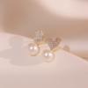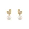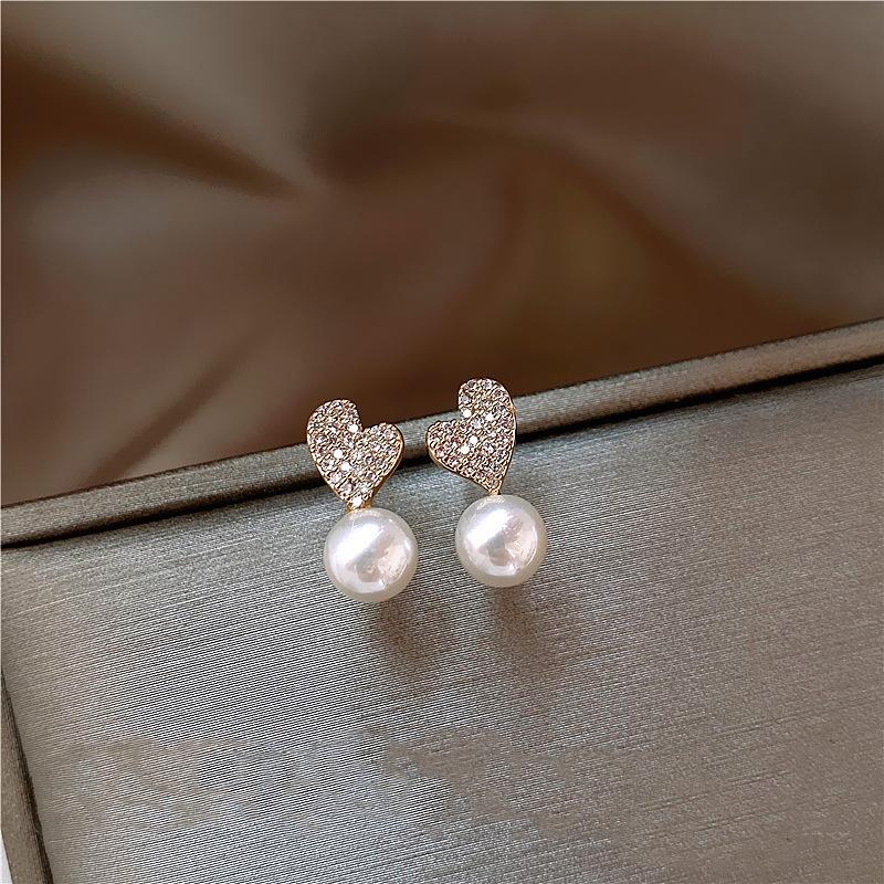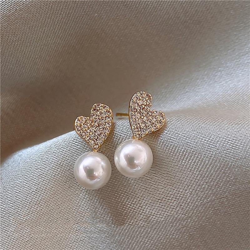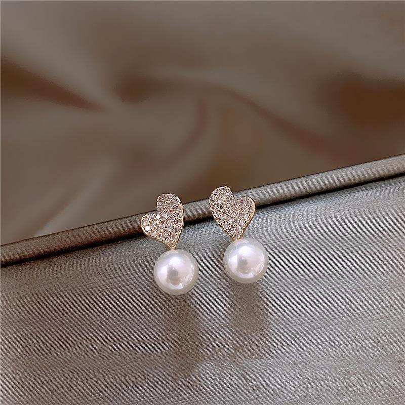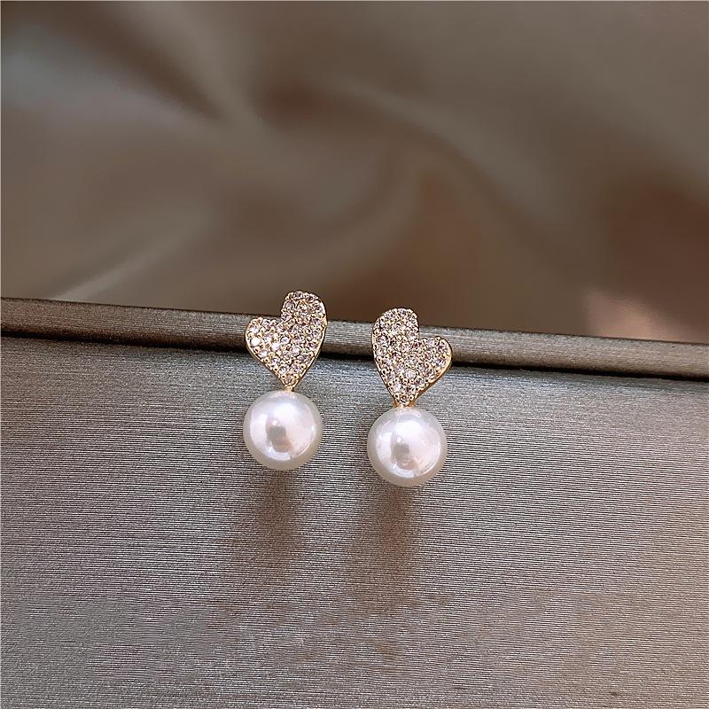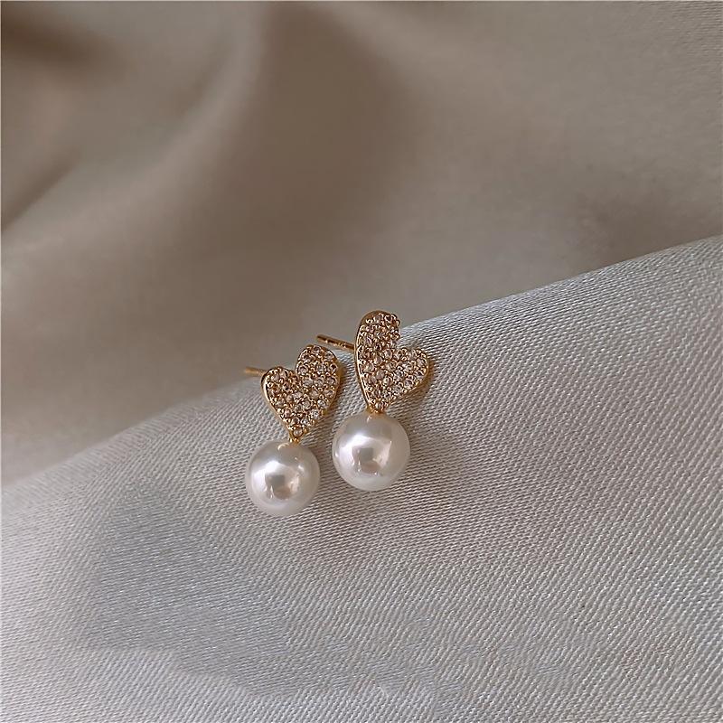 Pendientes de perla de circonita estilo francés con diseño de nicho vintage para mujer, de alta gama, ligeros, de lujo, estilo coreano, elegantes, con forma de corazón.
