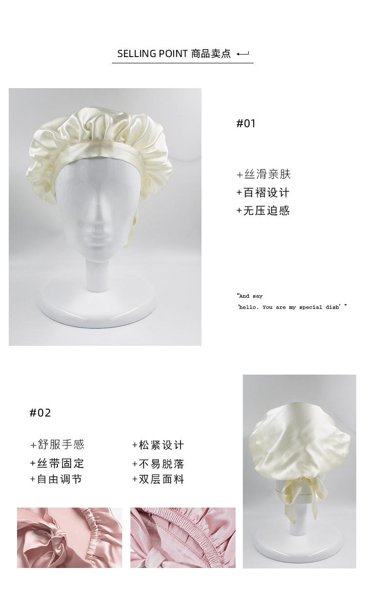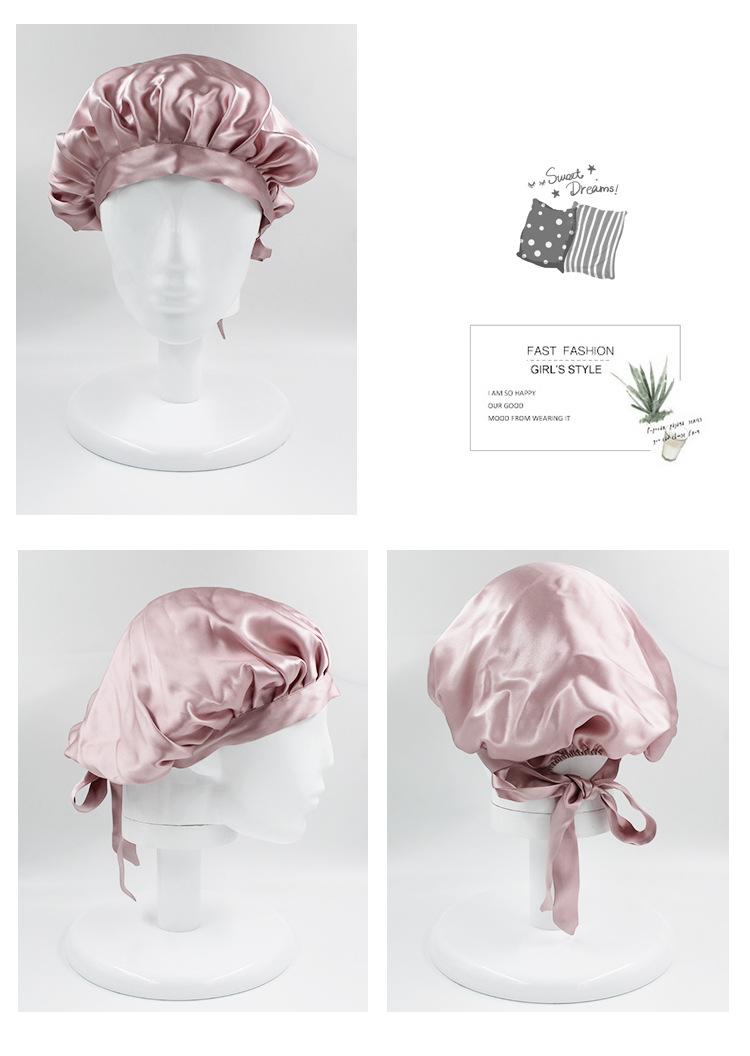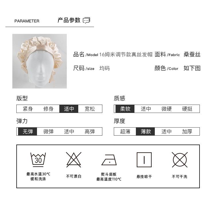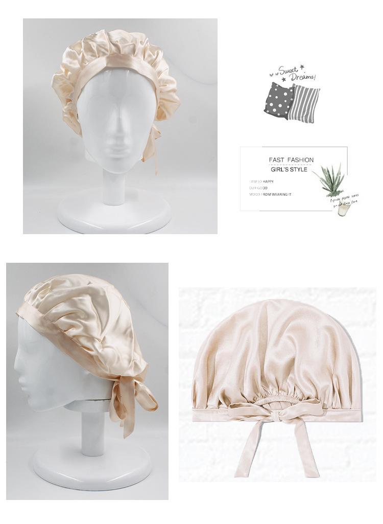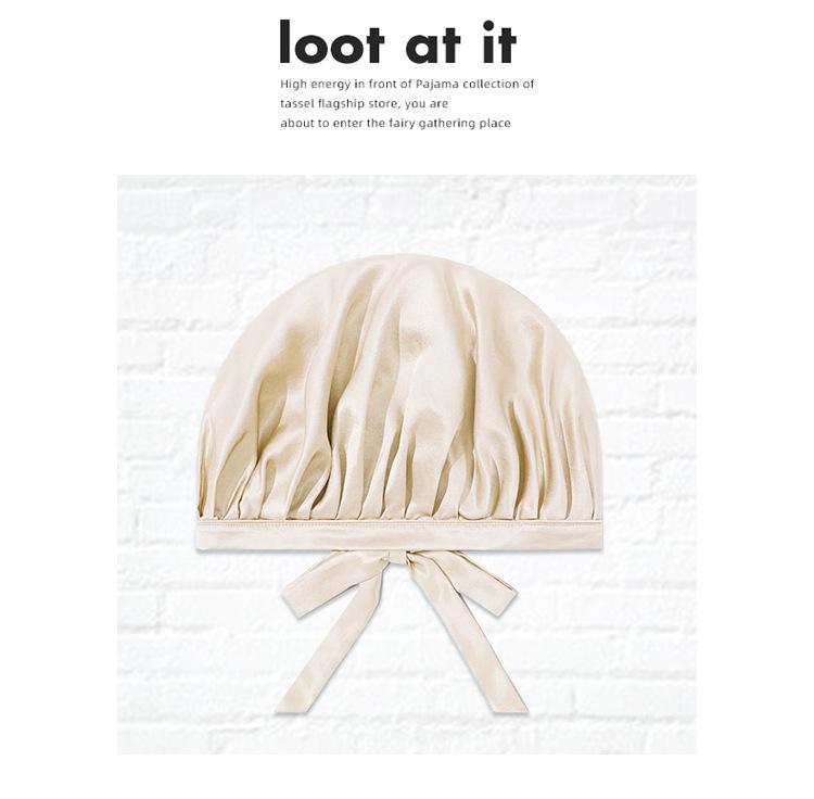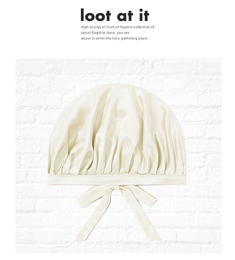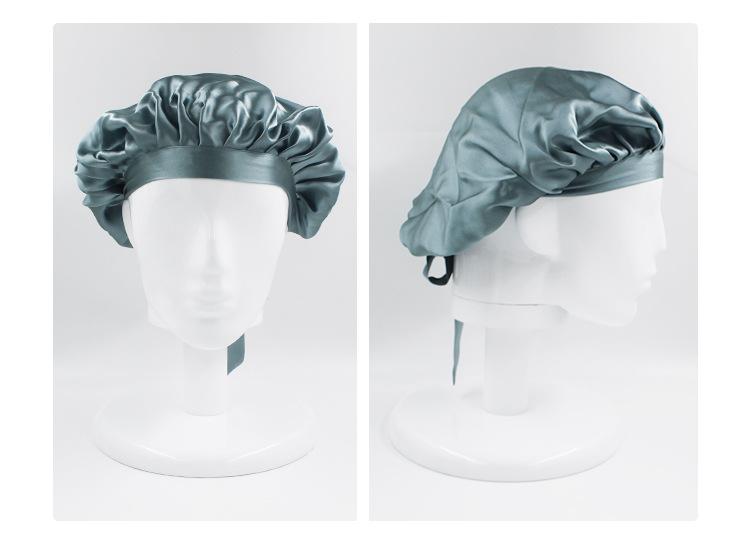 Gorro de dormir de seda de 16 mm, seda morera, liso, crepé, satén, Yuezi, cuidado del cabello para el hogar, con cordones, ajustable, cuidado del cabello, seda, cabello largo