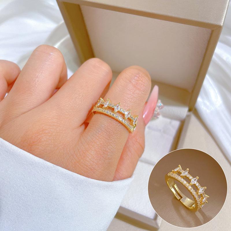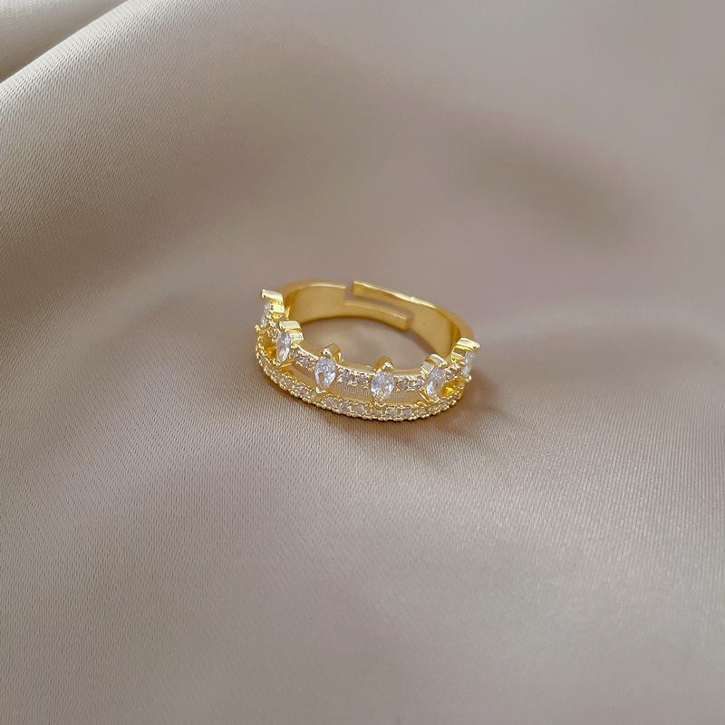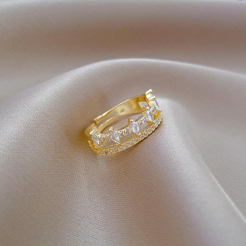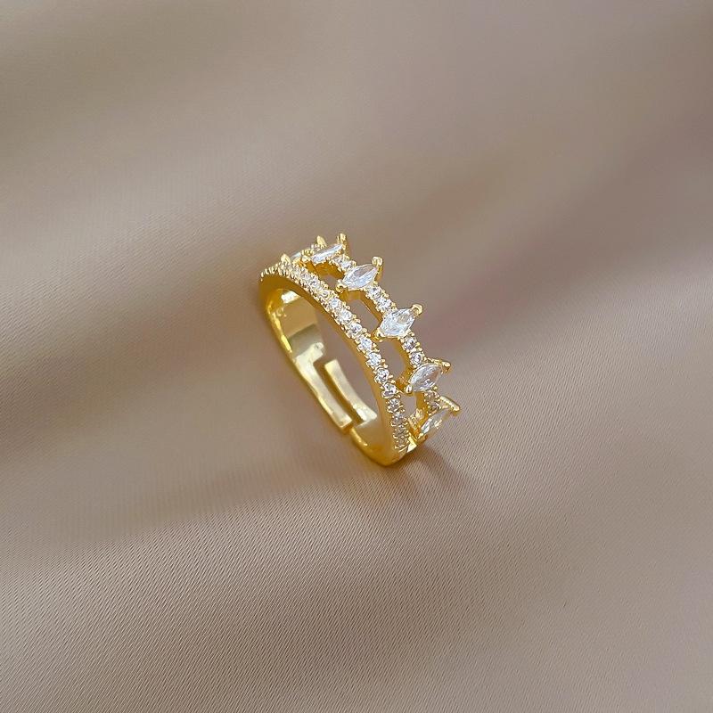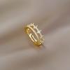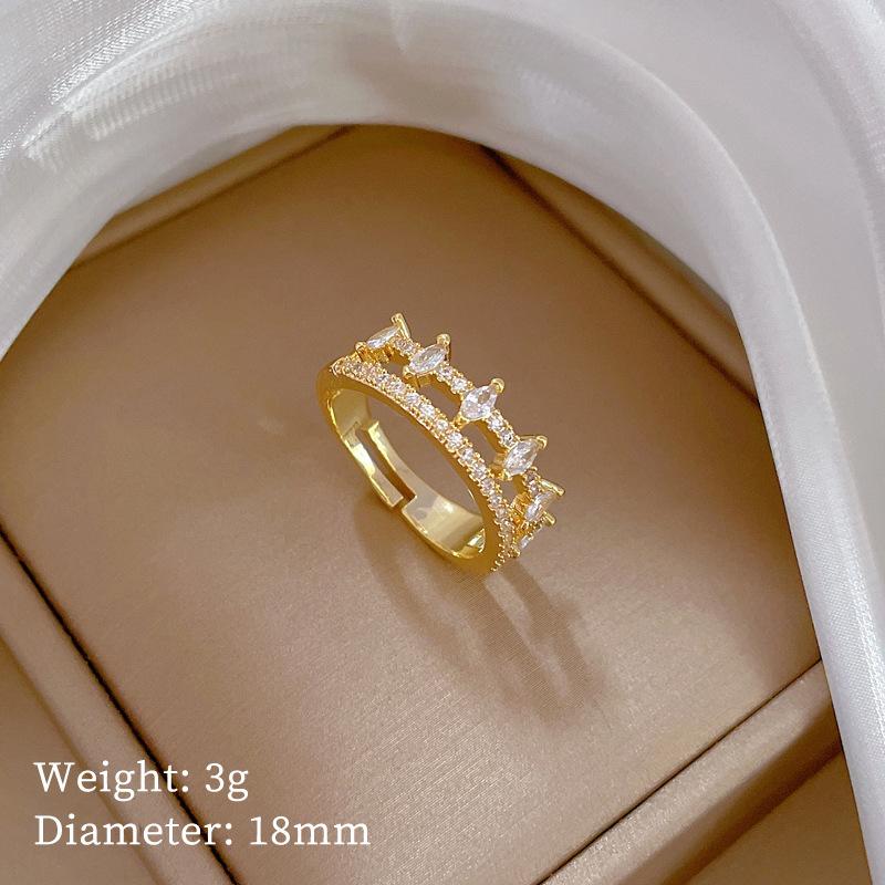 [Oro Real] Anillo de Boda de Doble Capa con Diamantes Completos con Abertura Ajustable, Joyería Simple para la Mano, Anillo Estilo Estilo Japonés, Anillo para Pareja