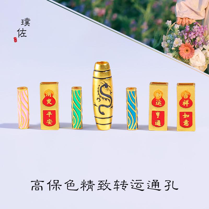Tienda de oro con accesorios de bricolaje de oro vietnamita con patrón de piedra, cuentas largas, riqueza, prosperidad, buena suerte, paz, mujeres