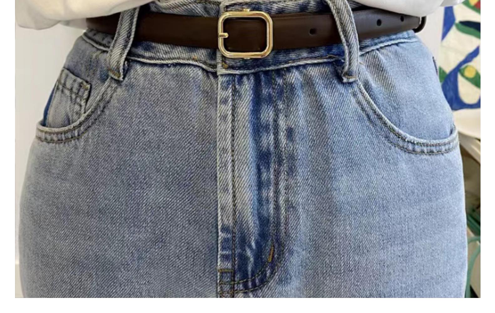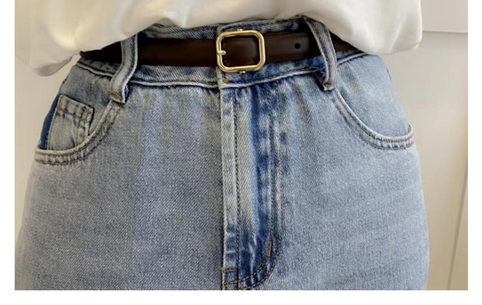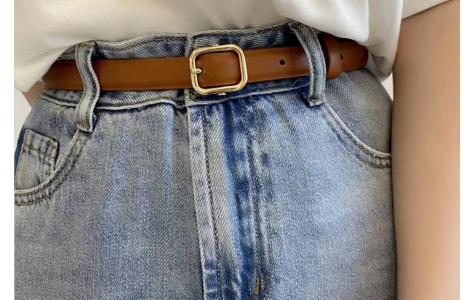 Cinturón de mujer con hebilla dorada cuadrada retro artística, nuevo cinturón pequeño coreano, cinturón decorativo para pantalones vaqueros, cinturón de estudiante