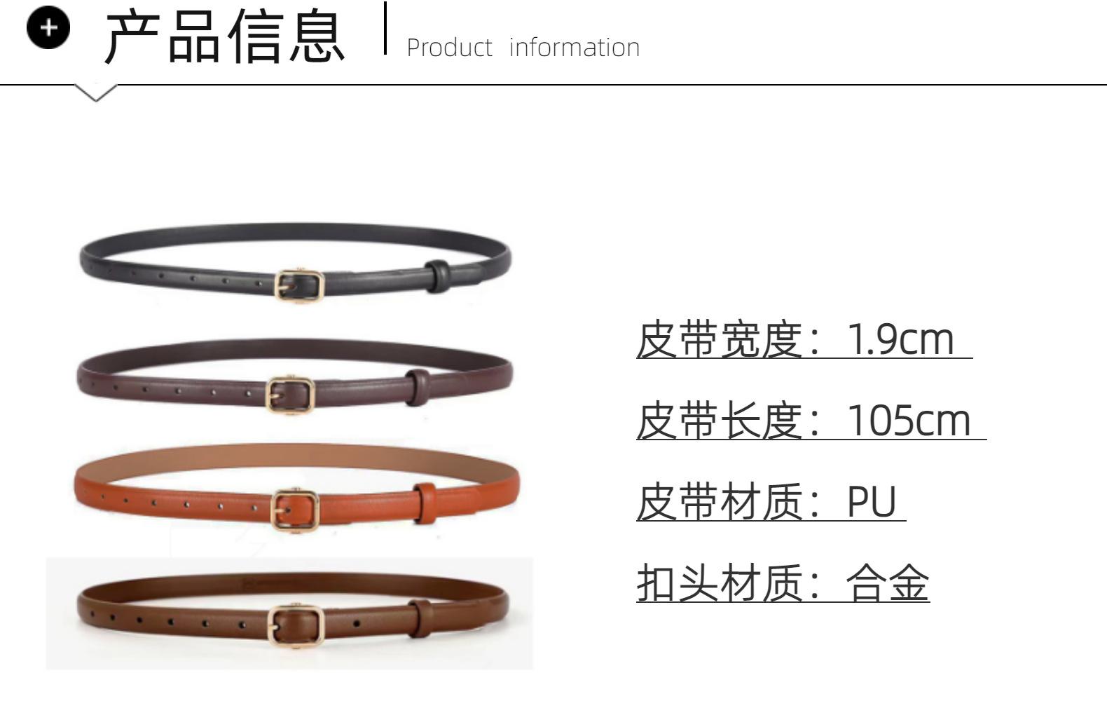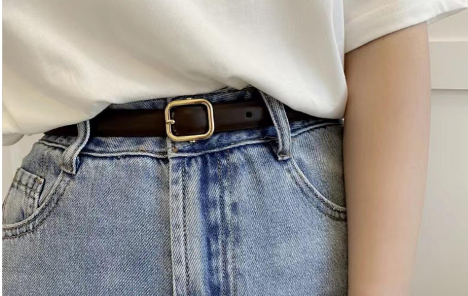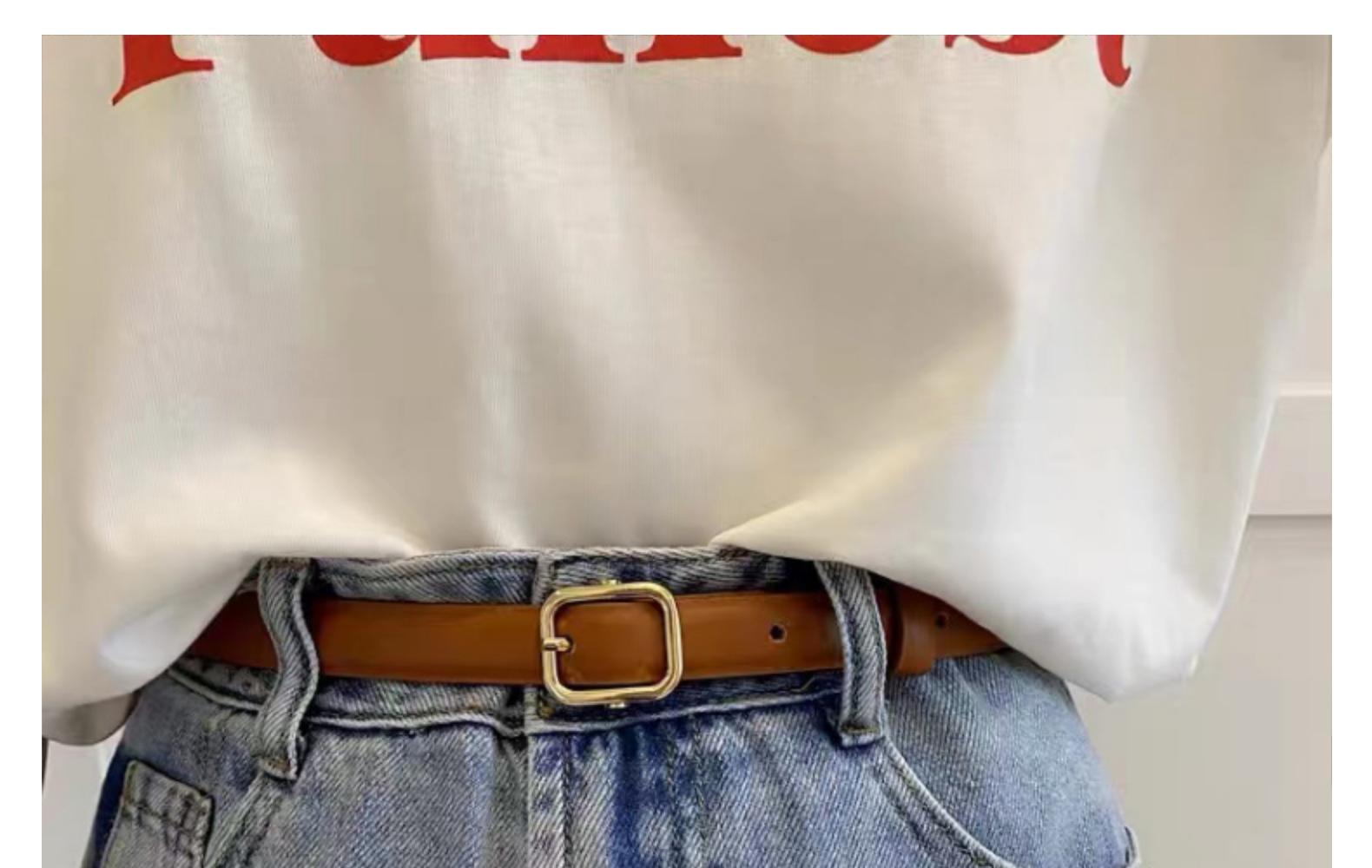 Cinturón de mujer con hebilla dorada cuadrada retro artística, nuevo cinturón pequeño coreano, cinturón decorativo para pantalones vaqueros, cinturón de estudiante