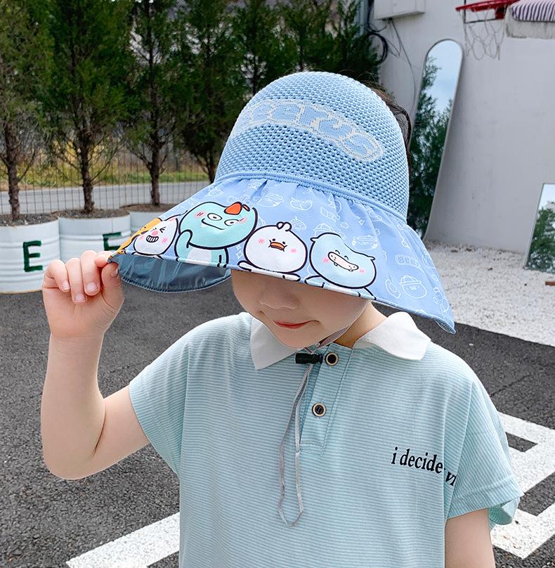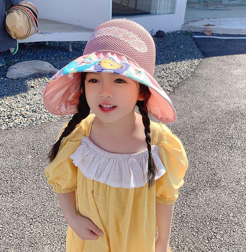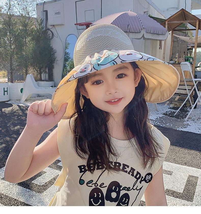 Sombrero de Sol de Verano para Niños de Ala Ancha Visera de Dibujos Animados Sombrero de Sol Transpirable Sombrero de Protección Solar para Niños y Niñas