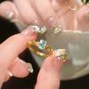 RAKOL Anillo de circonita esmeralda de lujo ligero de personalidad de nueva moda japonesa y coreana para mujer, anillo retro de estilo frío ins
