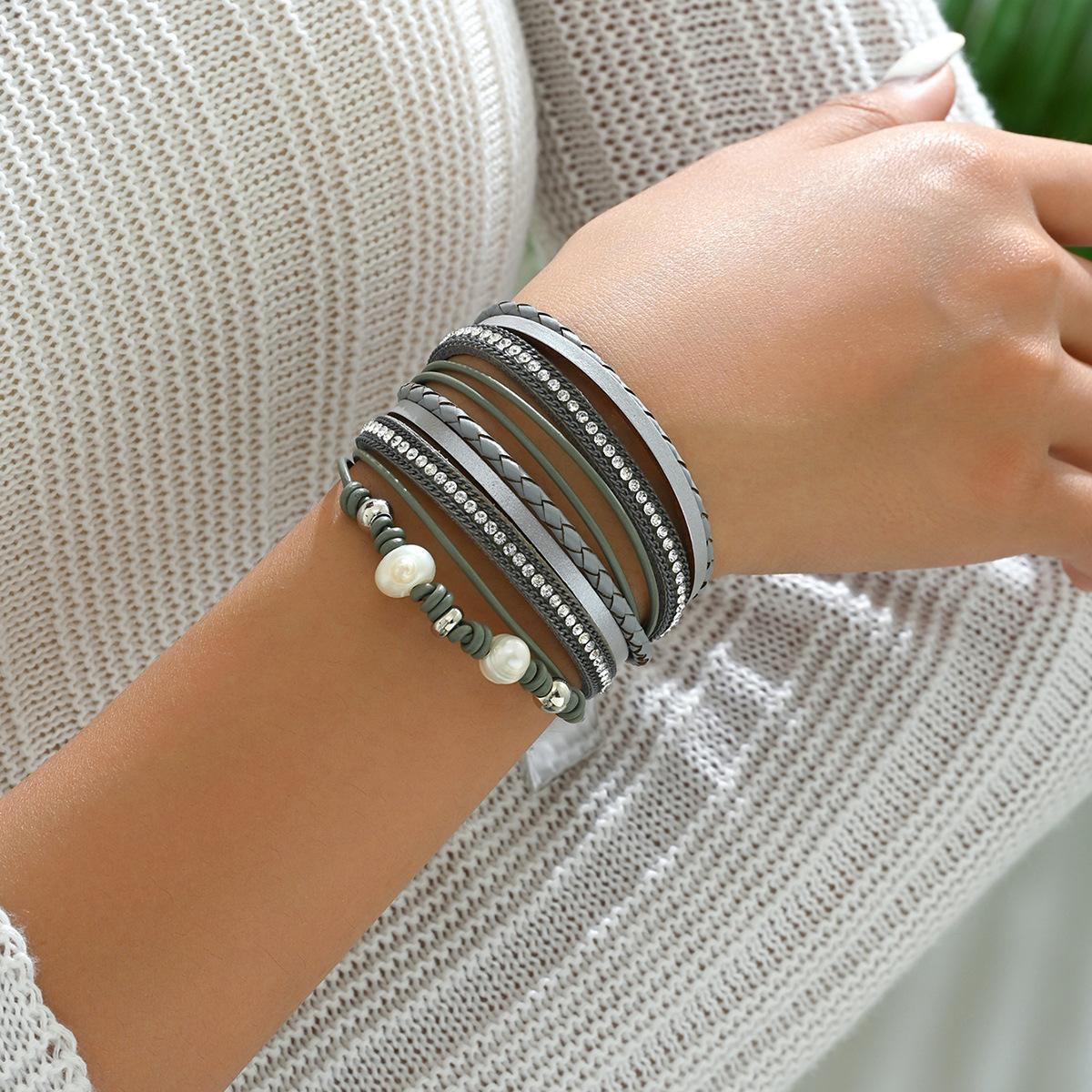Pulsera de Mujer Sencilla de Moda Europea y Americana para Combinar con Todo, Pulsera de Nicho Distintiva de Diamantes y Perlas, Pulsera de Diseño Retro